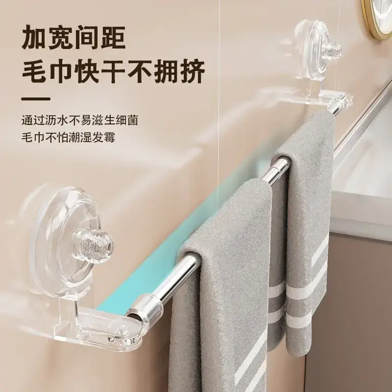 大号高颜值吸盘旋转伸缩不锈钢毛巾架浴室浴巾拖鞋 活动中