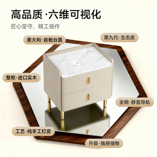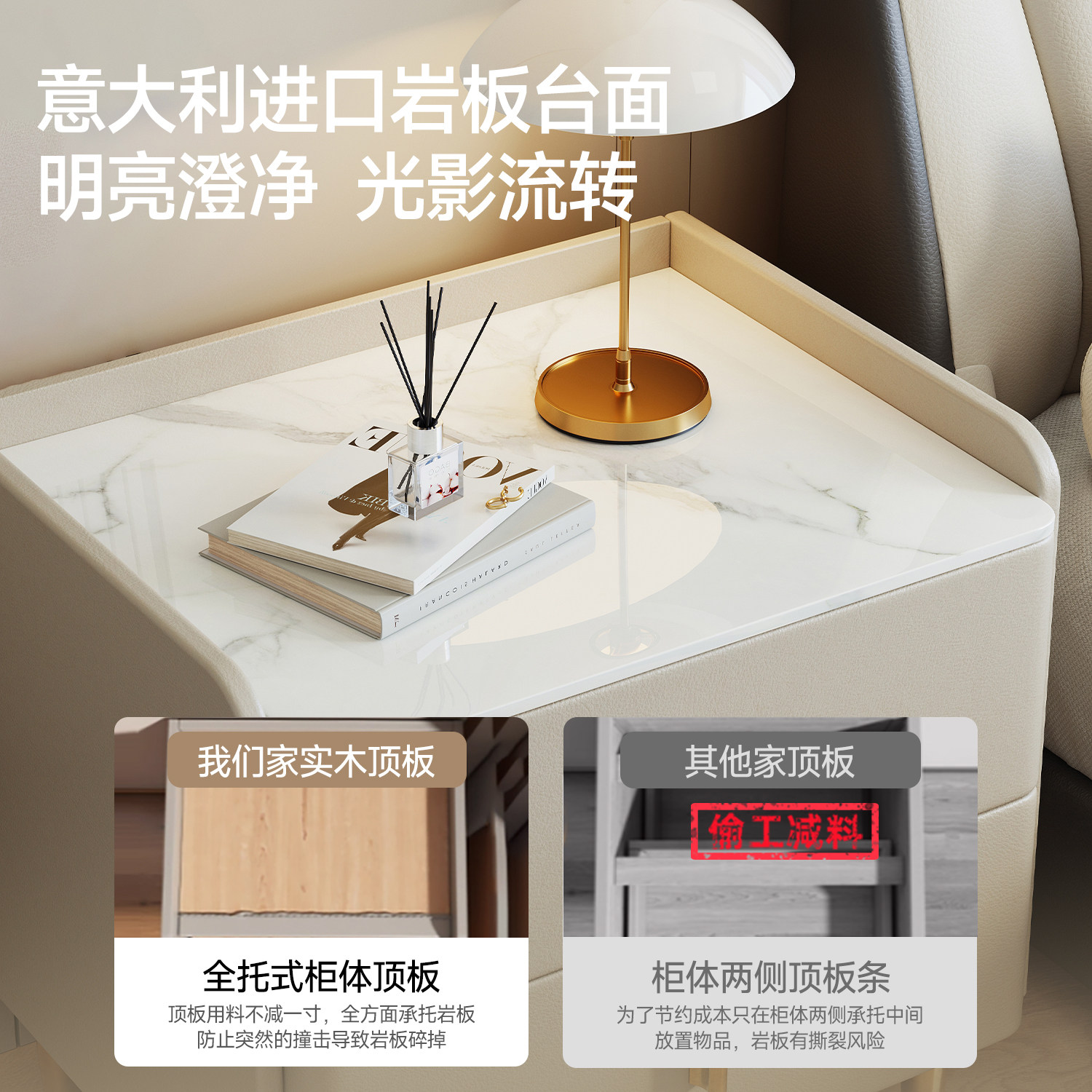 岩板实木床头柜家用小户型迷你窄柜简约现代皮革床边柜轻奢收纳柜