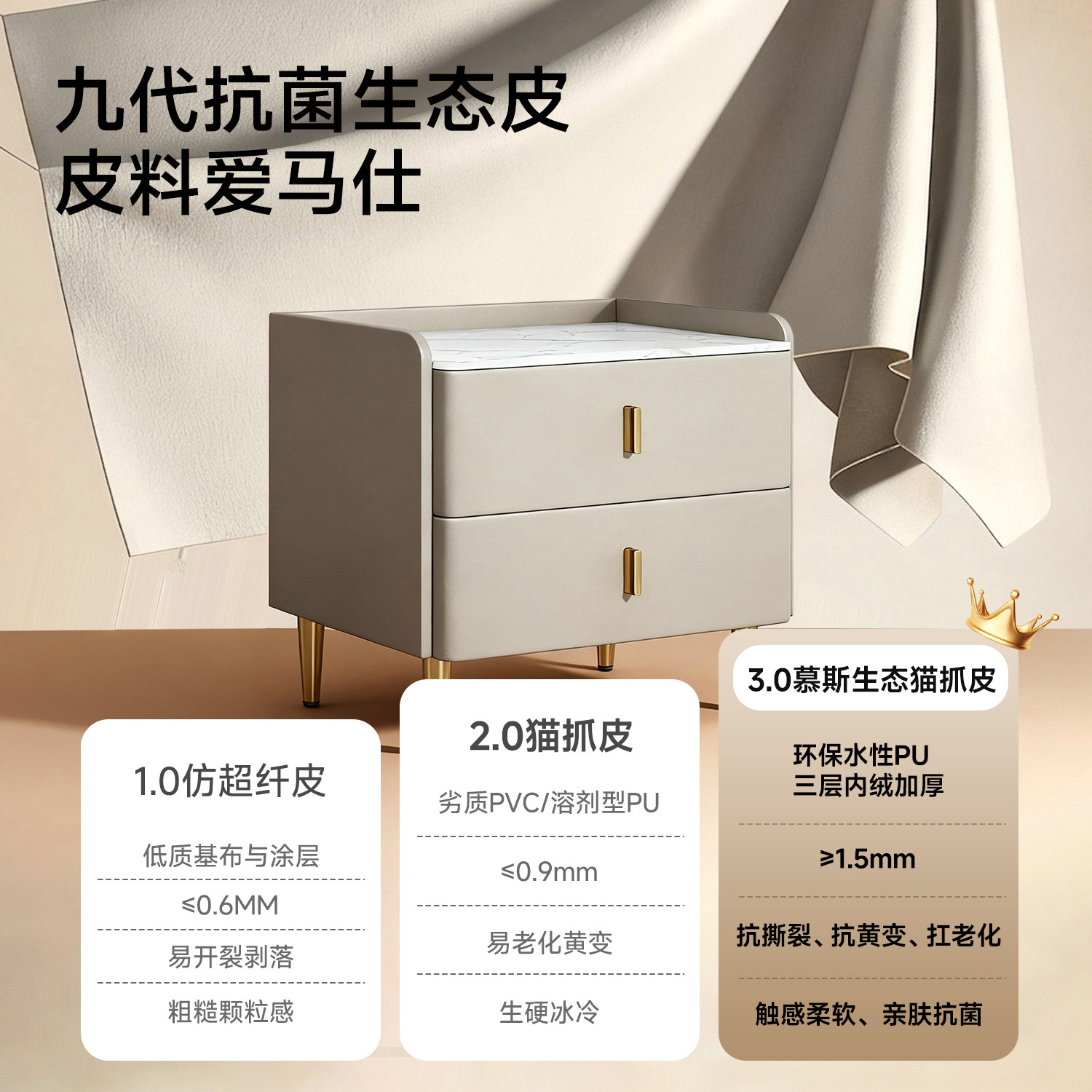 2025新款 床头柜高级感马鞍皮全实木简约现代收纳储物沙发柜轻奢