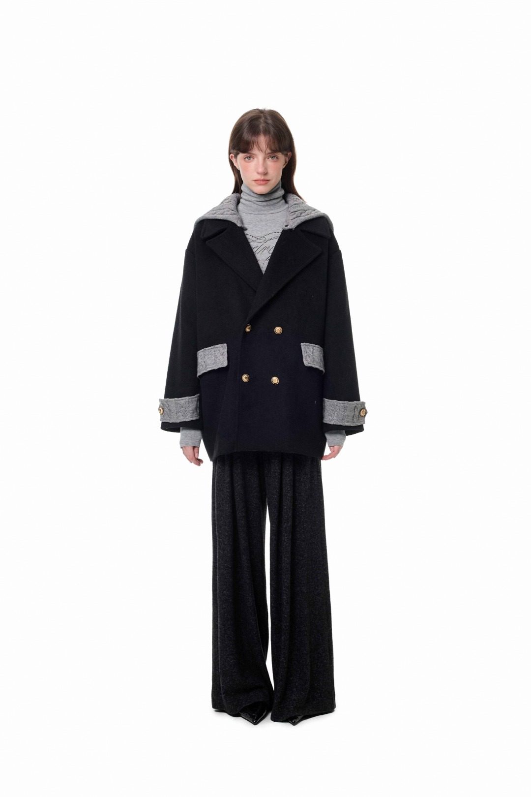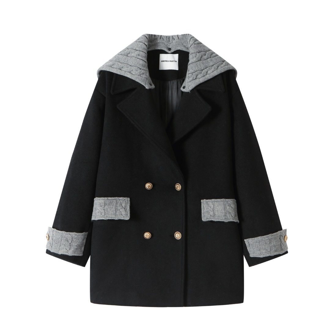 可拆卸DK毛呢外套JK校供基础款 连帽羊毛大衣KANKO学院风KK520