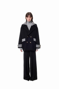 沫晗依美时髦显白连肩袖 保暖毛呢外套女 羊毛双面呢大衣25秋冬新款