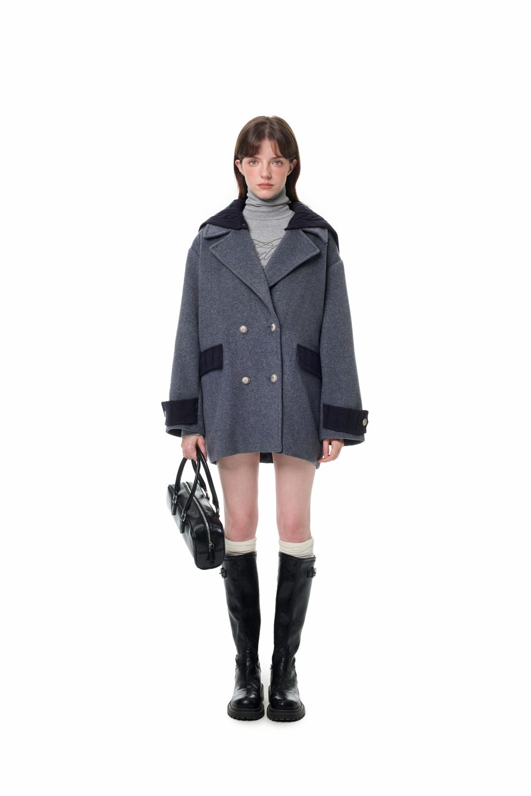 慵懒风双面羊毛大衣女中长款 灰色毛呢外套高级感