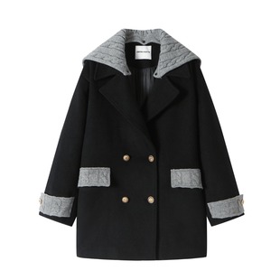 胖mm特大码 毛呢外套 黑色赫本风呢子大衣女秋冬高级感慵懒风中长款