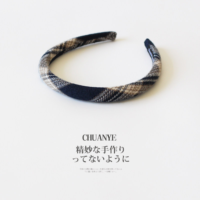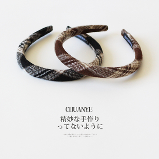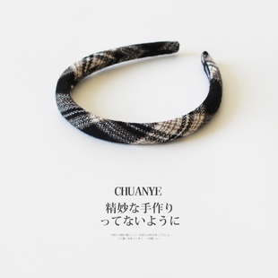 轻奢发箍女日常外戴高颅顶发饰 时尚 川野法式 复古格纹植绒发箍新款