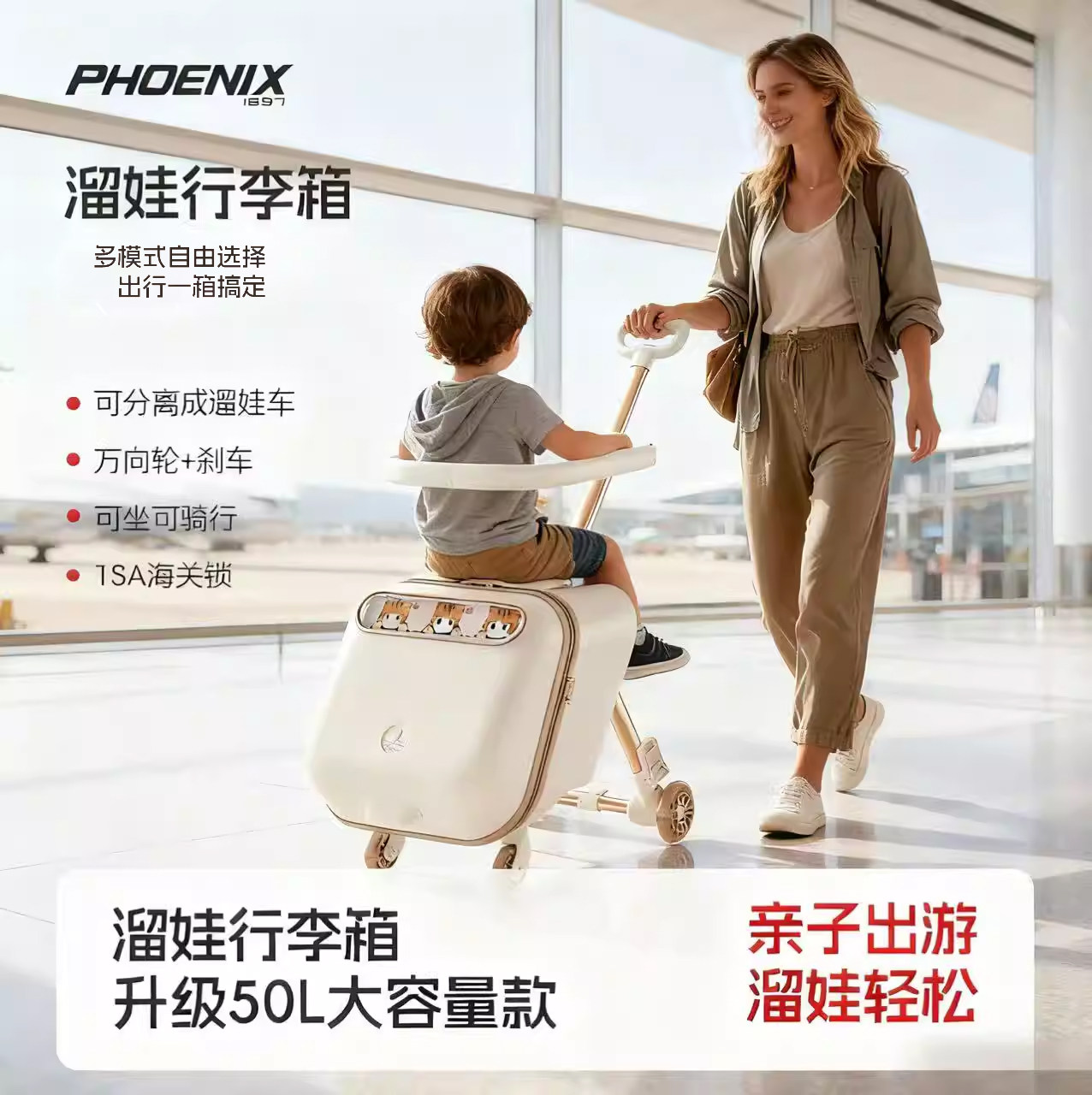 凤凰儿童行李箱可坐骑懒人遛溜娃神器可登机拉杆箱男女宝宝旅行箱