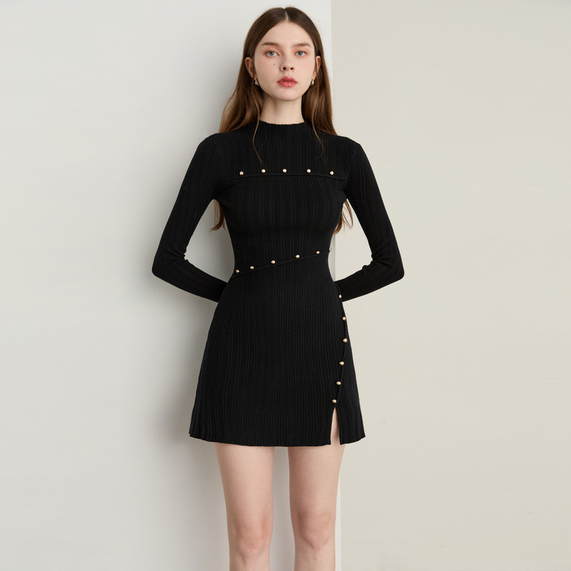长裙AD8502022 小香风气质感修身 西町村屋针织连衣裙女装 秋冬新款
