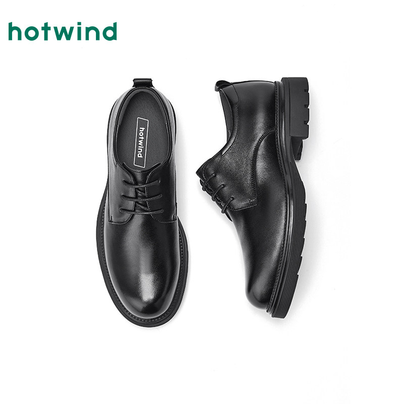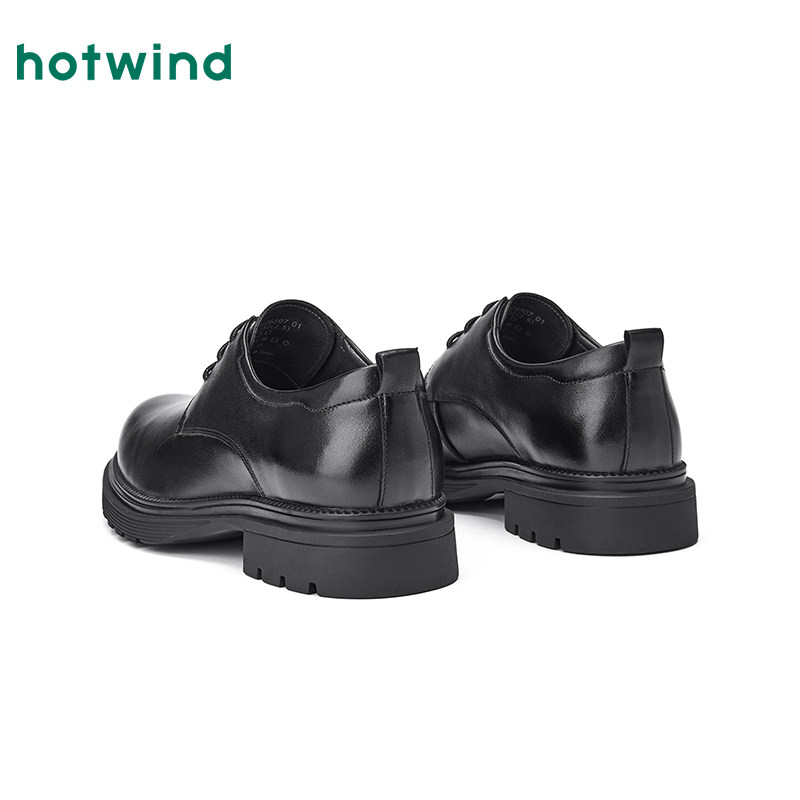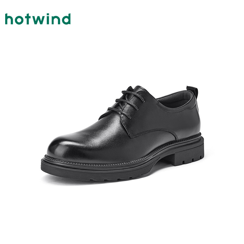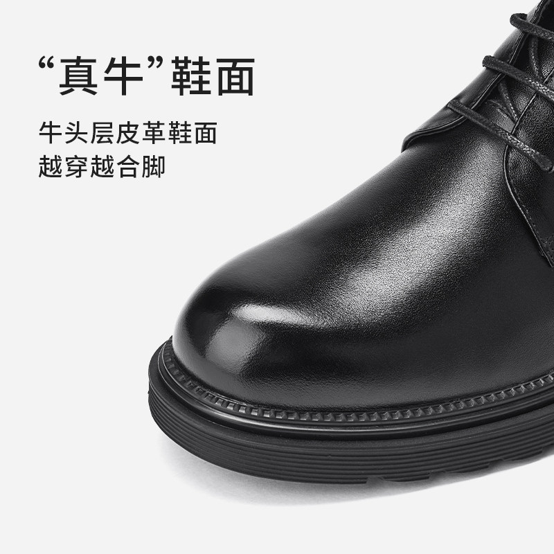 男士 时尚 皮鞋 2026年春季 商务正装 新款 黑色德比鞋 热风男鞋 休闲单鞋