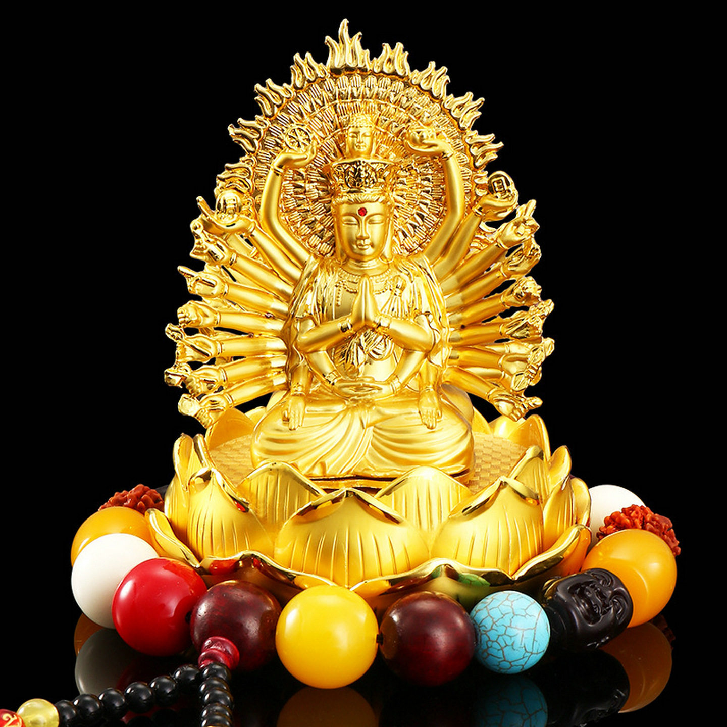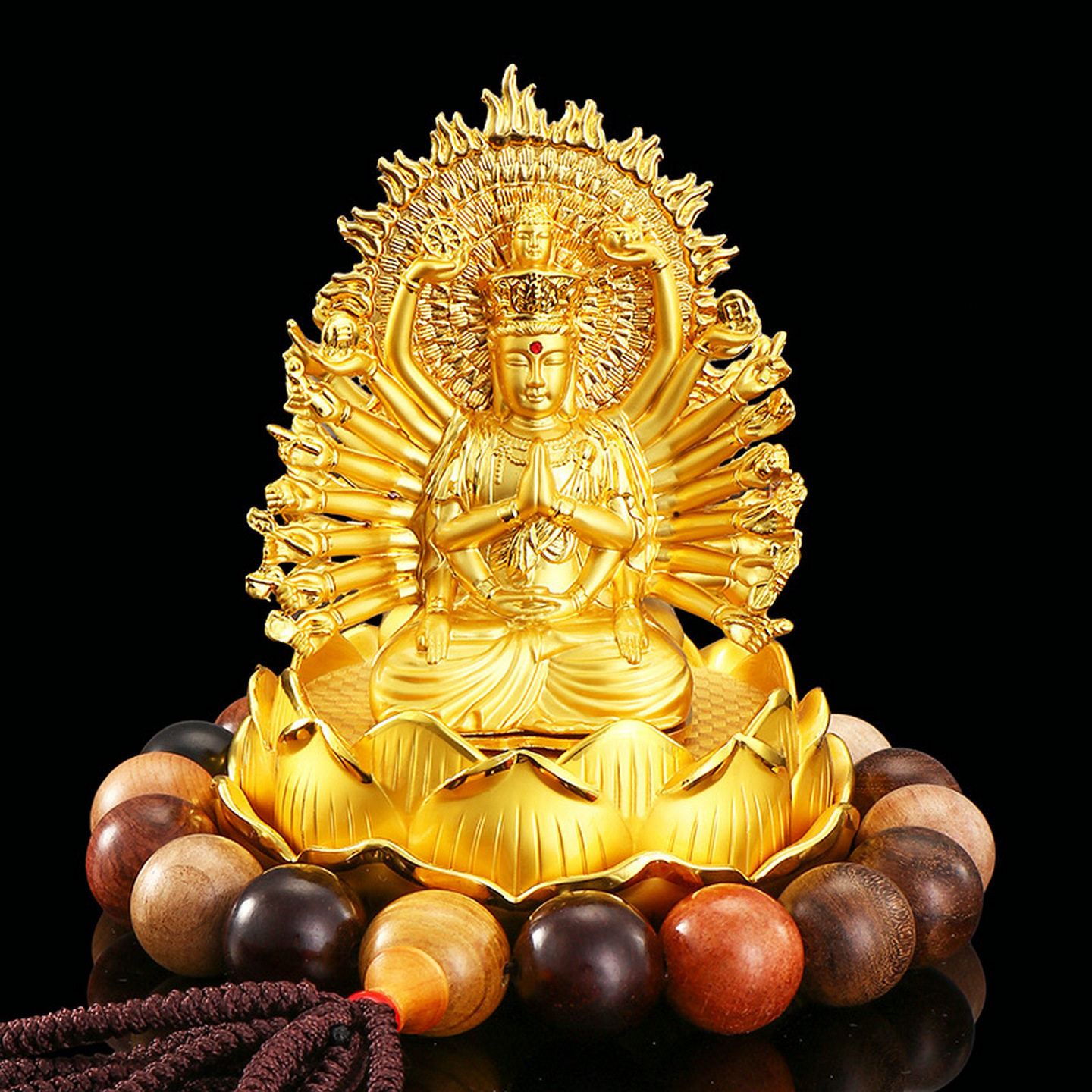 千手观音车载摆件金属车内饰中控台香水座装 饰祝福招财保平安神像