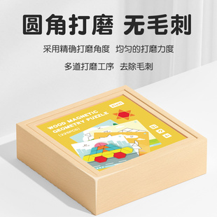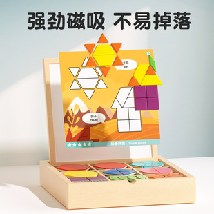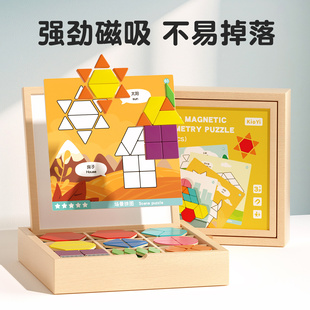 七巧板磁力拼图积木3 6岁儿童益智力玩具木质磁吸磁性几何玩具