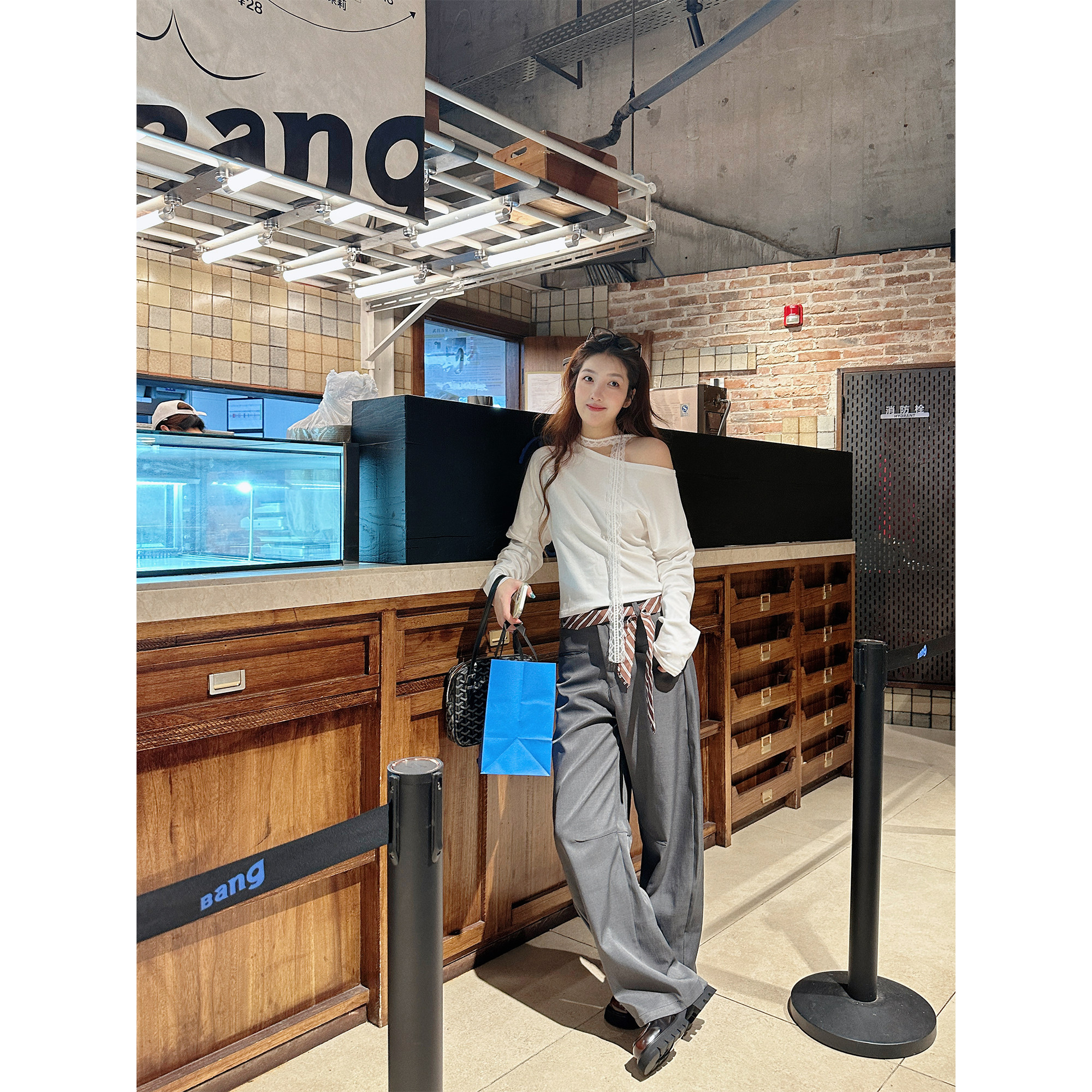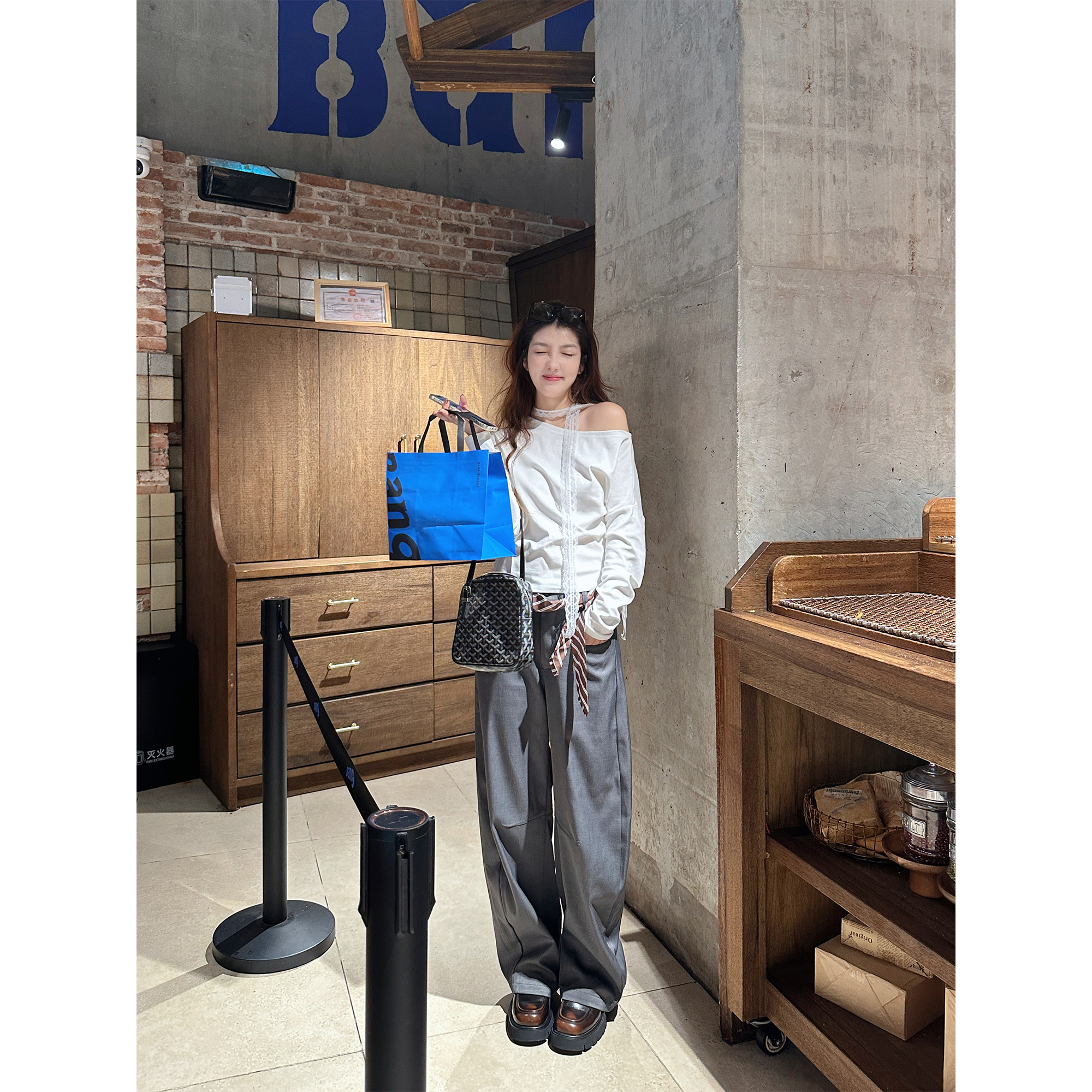 阔腿裤 WANNANKE 复古撞色条纹腰带弯刀西裤 美式 城市假日