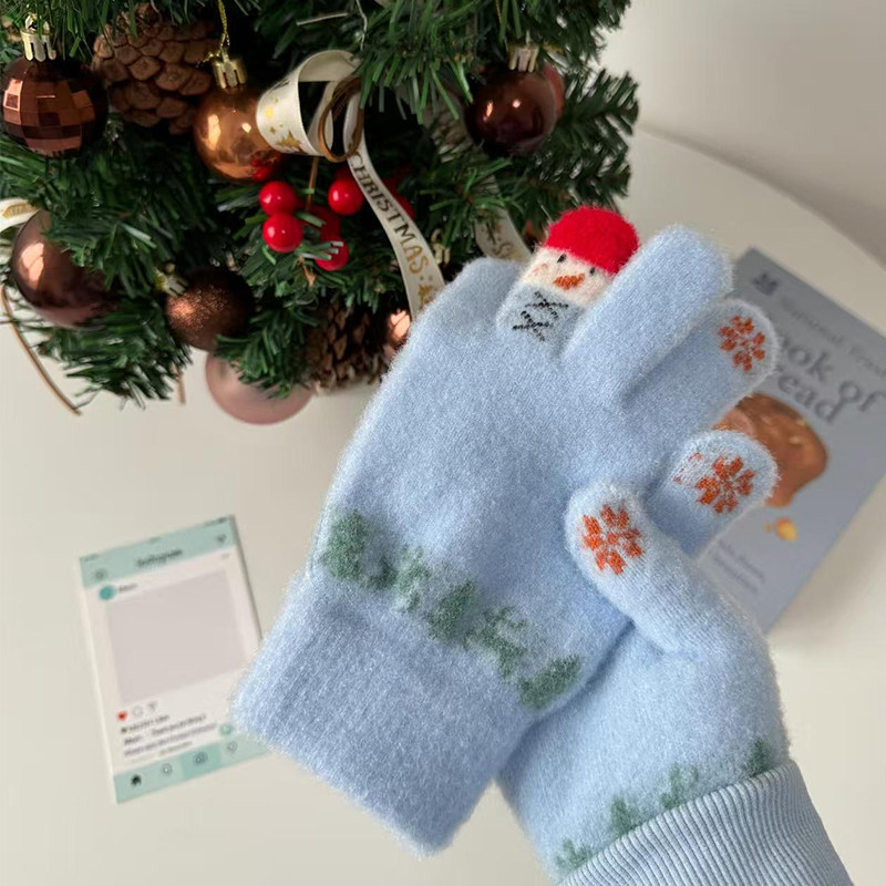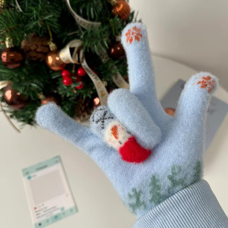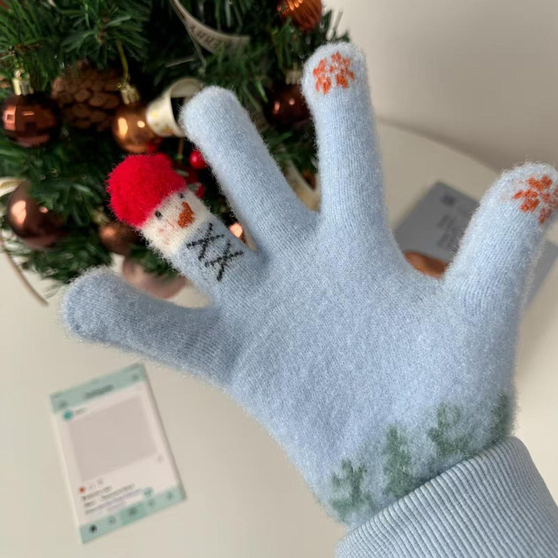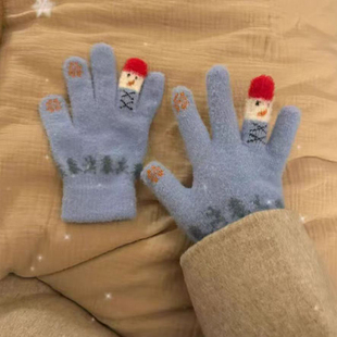 2025新款 保暖女童男童分指加绒可爱宝宝毛绒五指套 儿童手套秋冬季