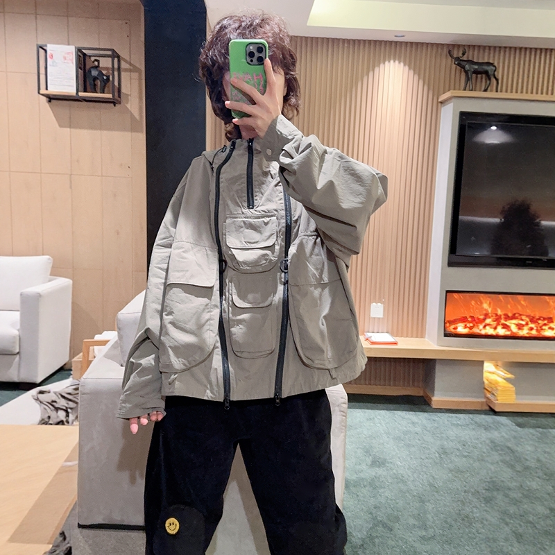 AMYOYOJA新款 双拉链冲锋衣外套女 重磅机能风连帽多口袋超立体版