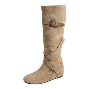 靴皮靴 时装 吴宣仪天美意千金靴复古厚底骑士靴加绒长靴女鞋 子新款