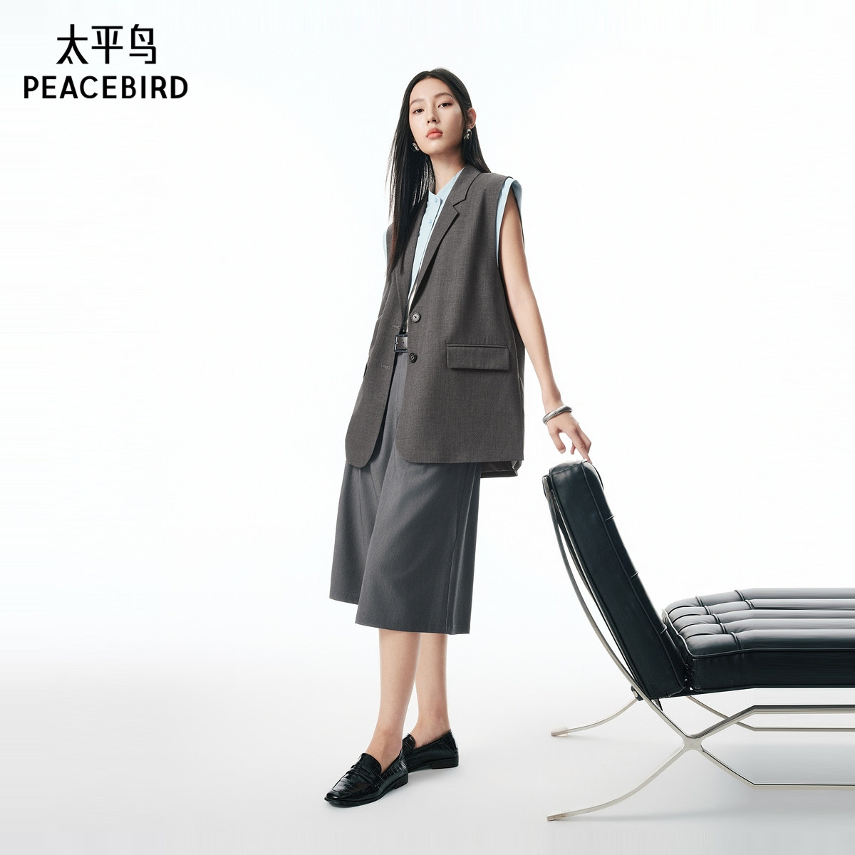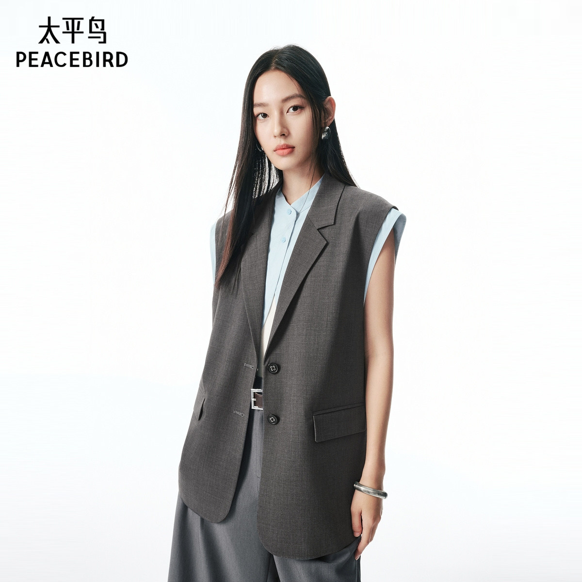 商场同款 马夹套装 太平鸟西装 假两件马甲外套无袖 A1BGF3122 式