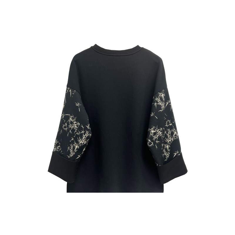 卫衣 空气棉水竹叶提花拼袖 505903原创新中式 春秋女国风 橙庐