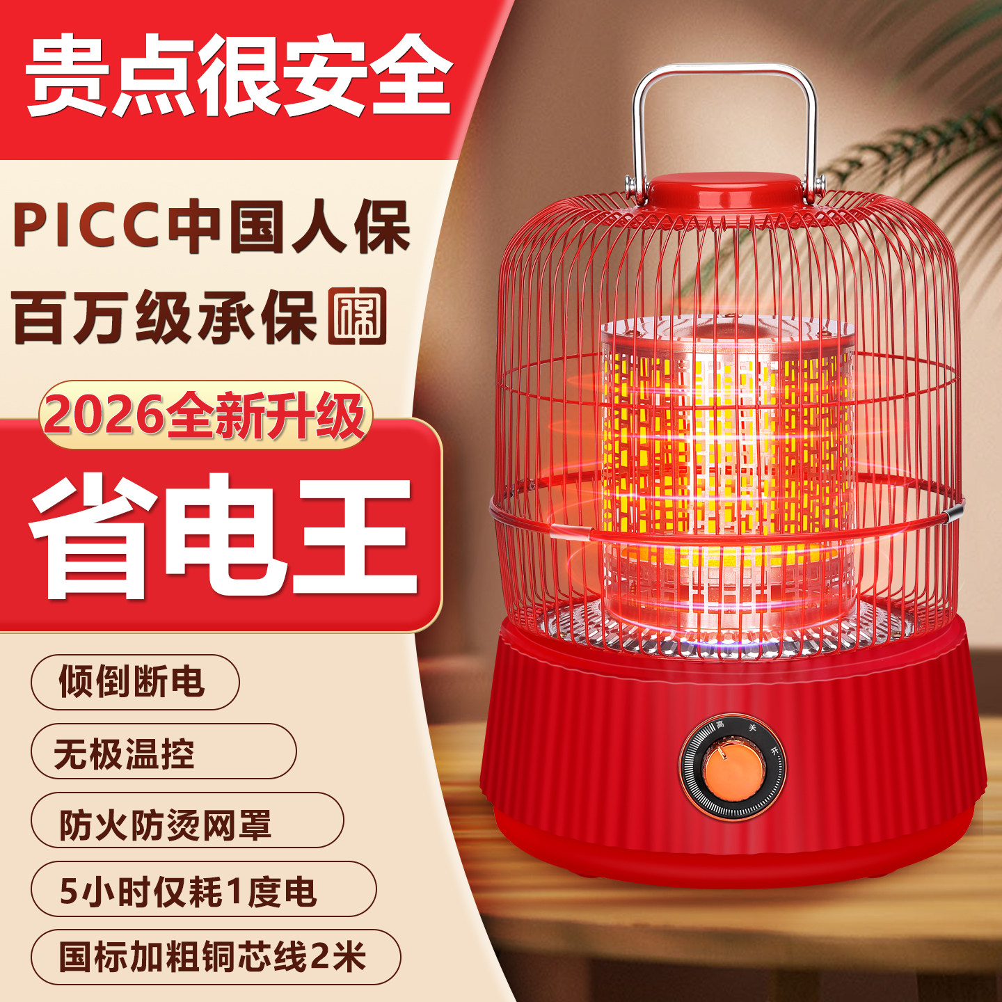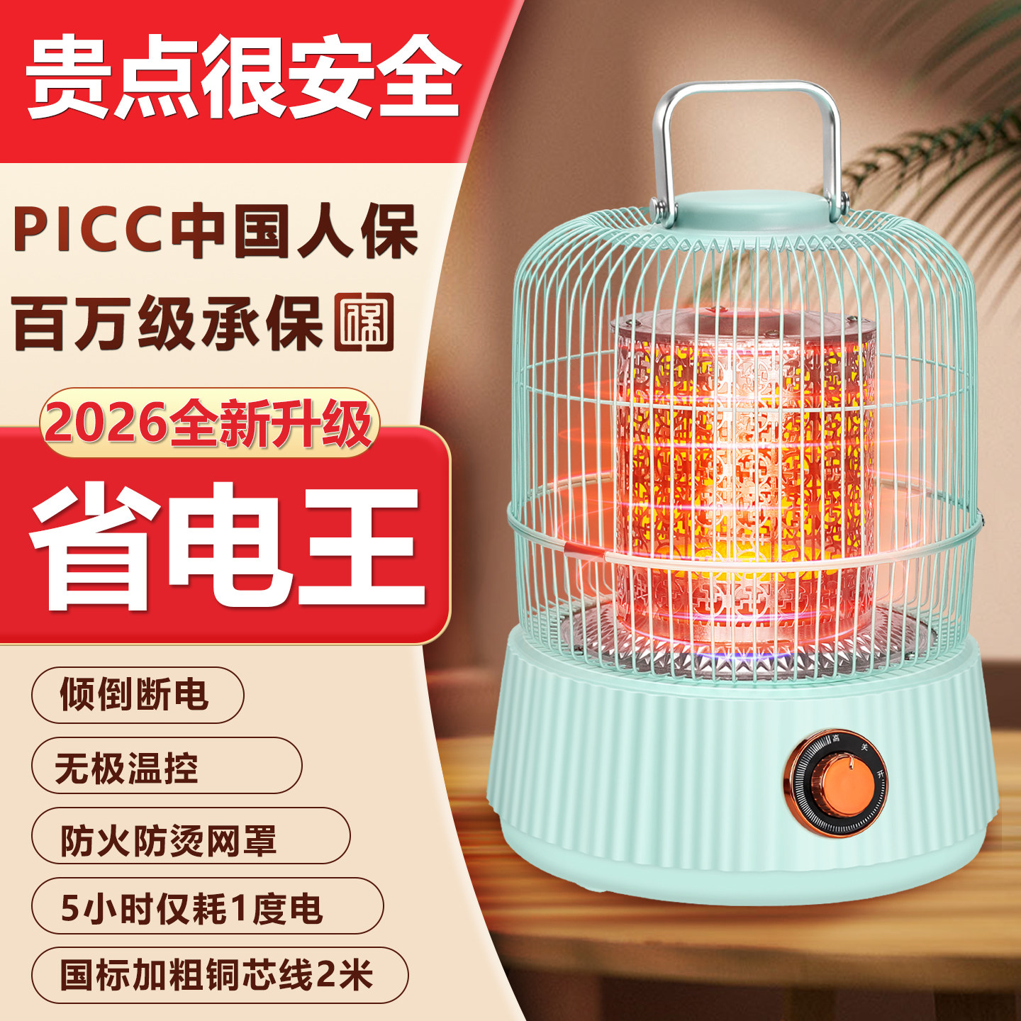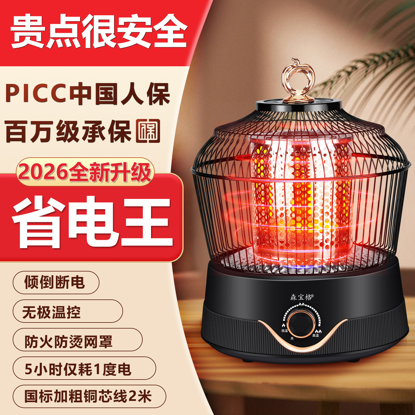 森宝格烤火炉鸟笼取暖器家用办公烤火器节能省电炉子小太阳电暖炉