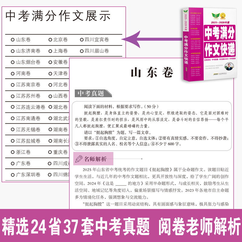 2026勤 素材精选24省37套中考真题 诚中考满分作文快递中考满分作文书大全作文素材高中生议论文高一高二高三热点模板范文精选经典
