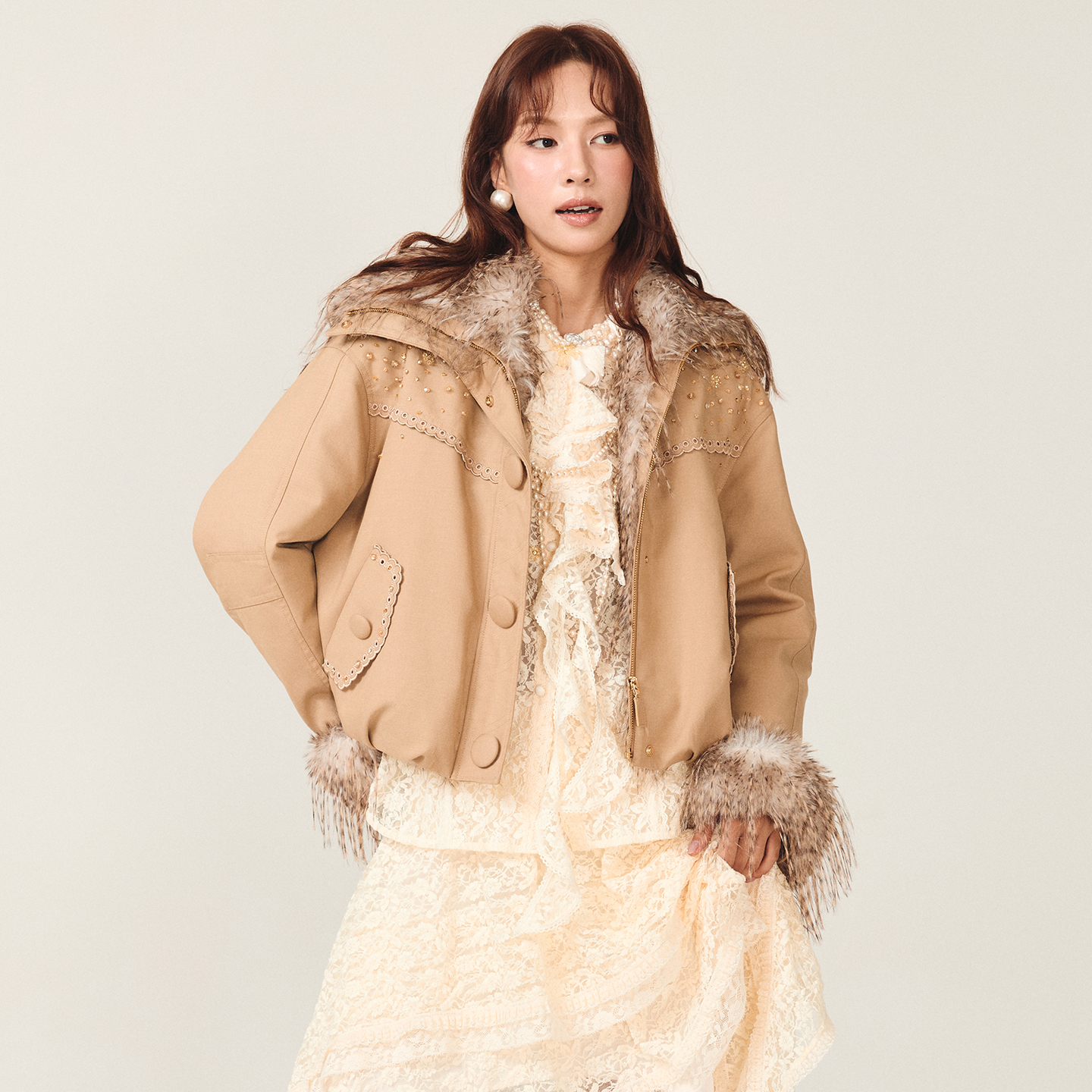 短款 lefame拉飞姆2025冬季 拼接波嬉风卡其色风衣式 时尚 羽绒服 新款