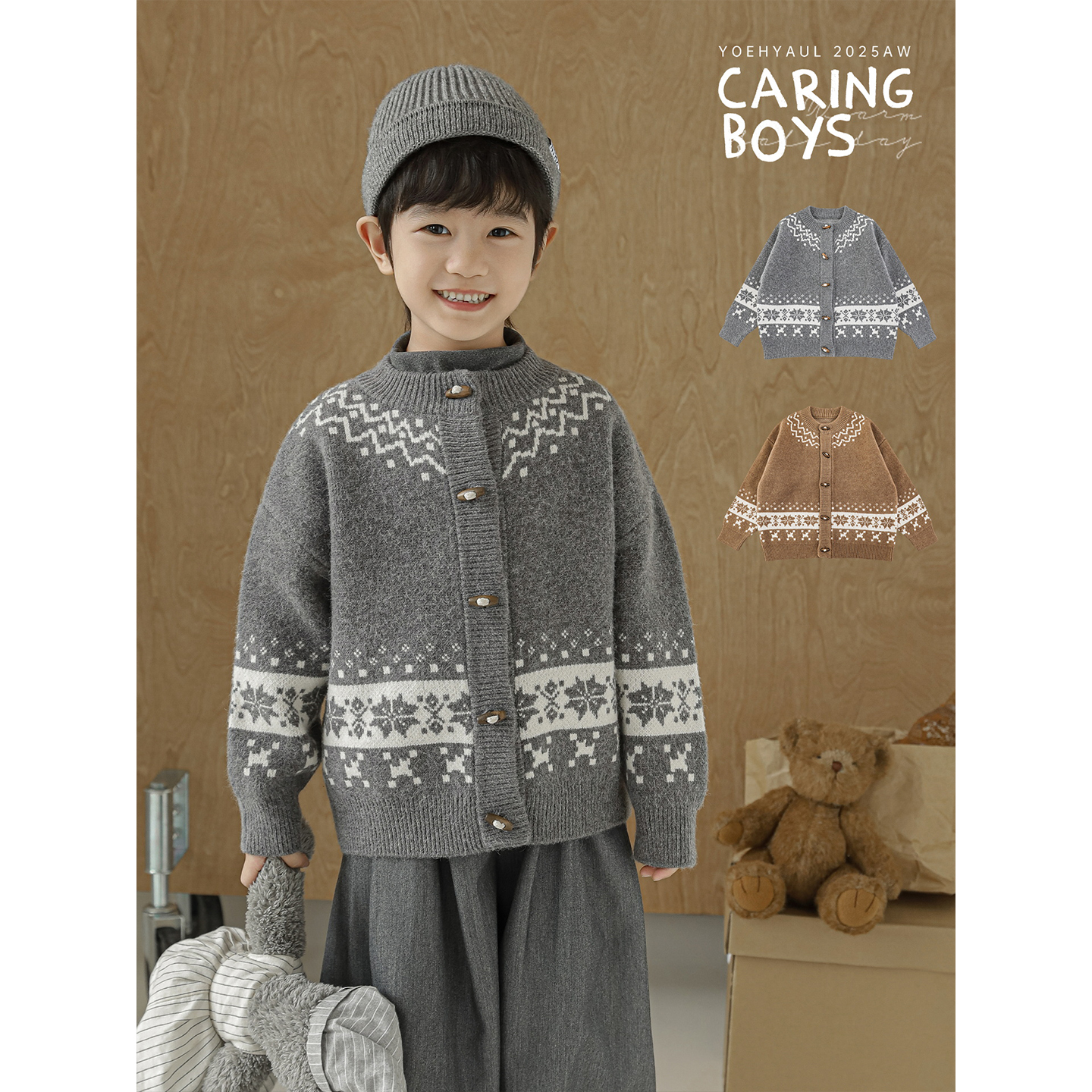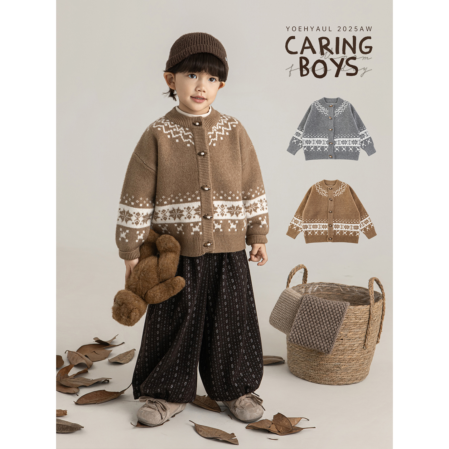 幼悠男童费尔岛芝麻点提花圆领毛衣冬季 百搭保暖上衣 软糯亲肤时尚