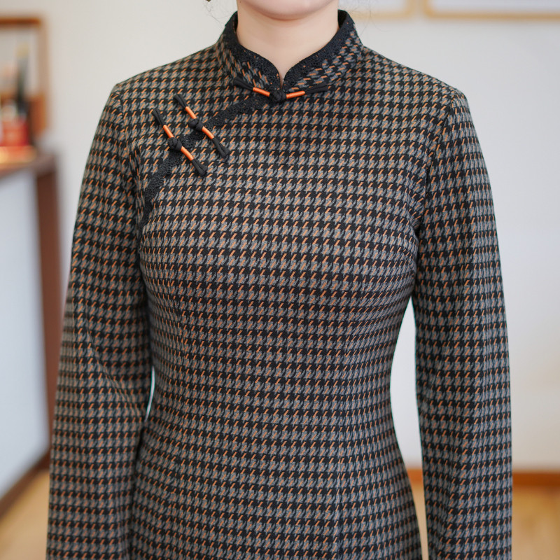 厚款 旗袍连衣裙 茶树子 国风秋冬厚款 画报夫人原创自制新中式