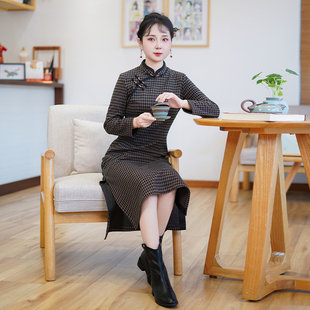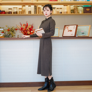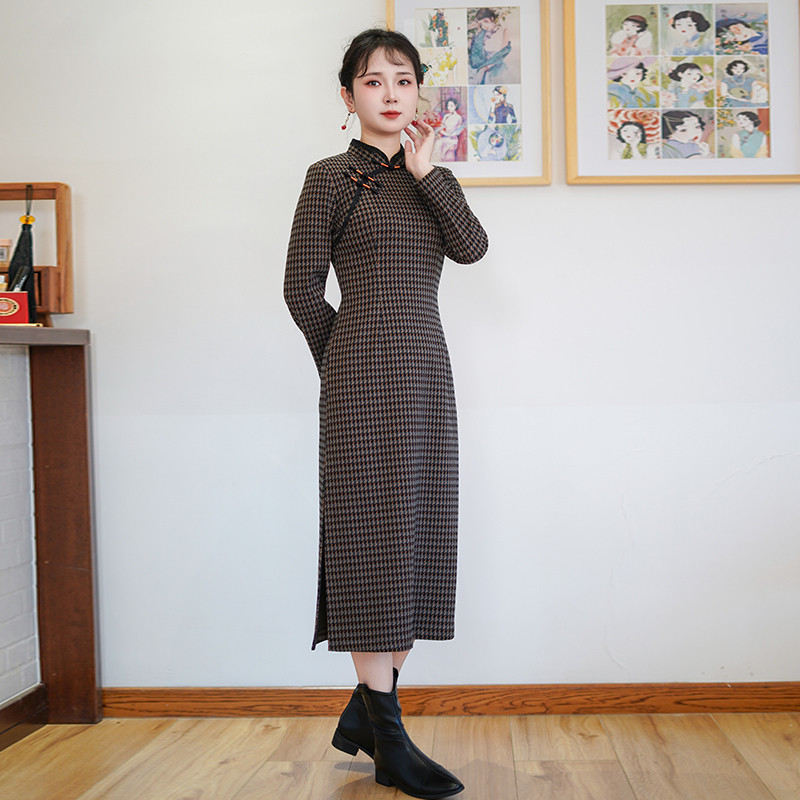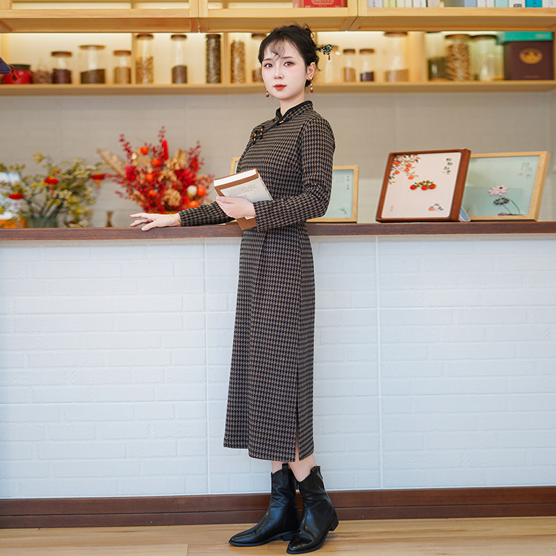 2025新款 秋冬加厚一体格子改良保暖显瘦旗袍裙子