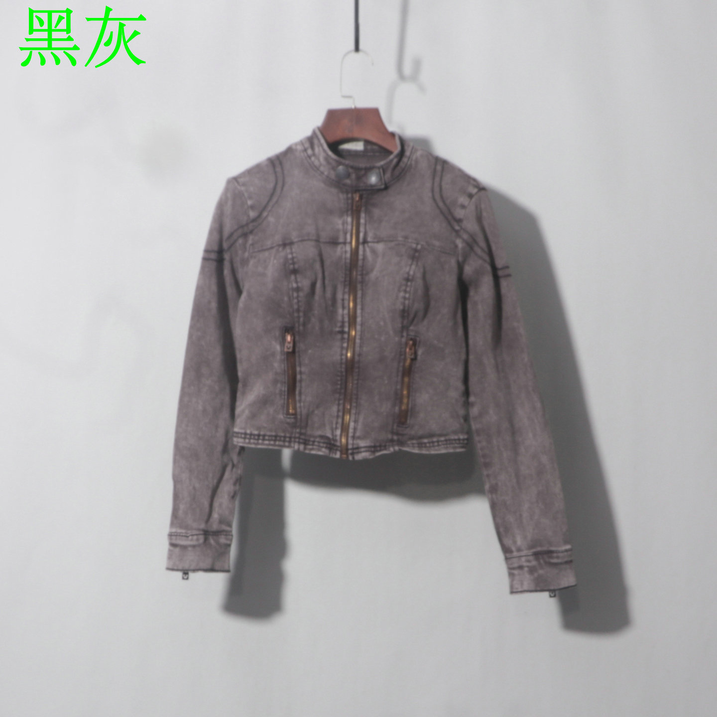外套女短款 水洗做旧工装 机车服 灰色牛仔衣夹克重工美式 水洗不均