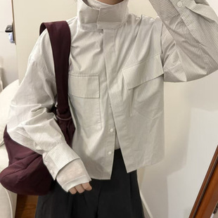 棉服女宽松休闲翻领保暖棉衣外套女 复古条纹加棉衬衫 2025新款 冬季