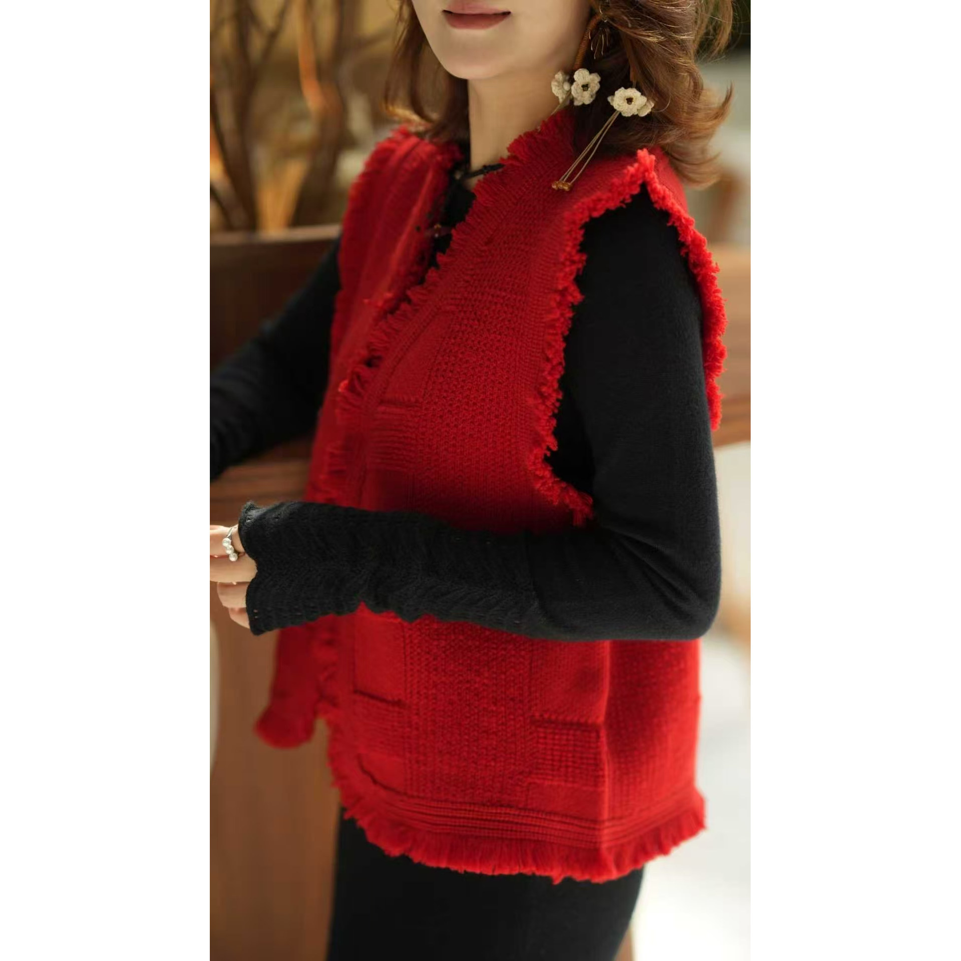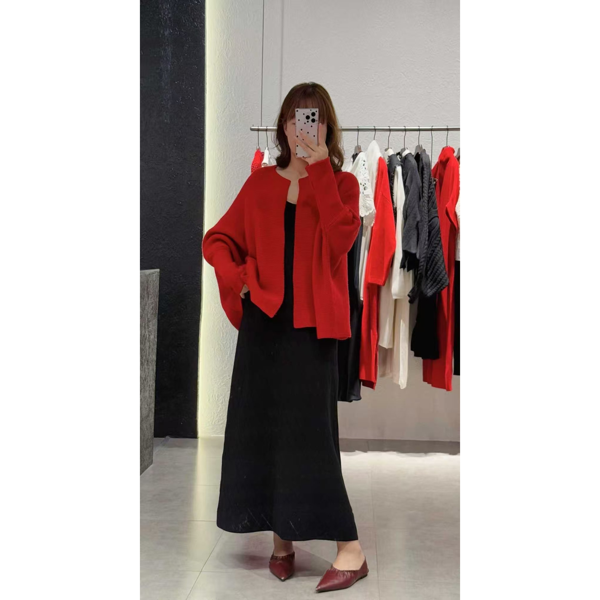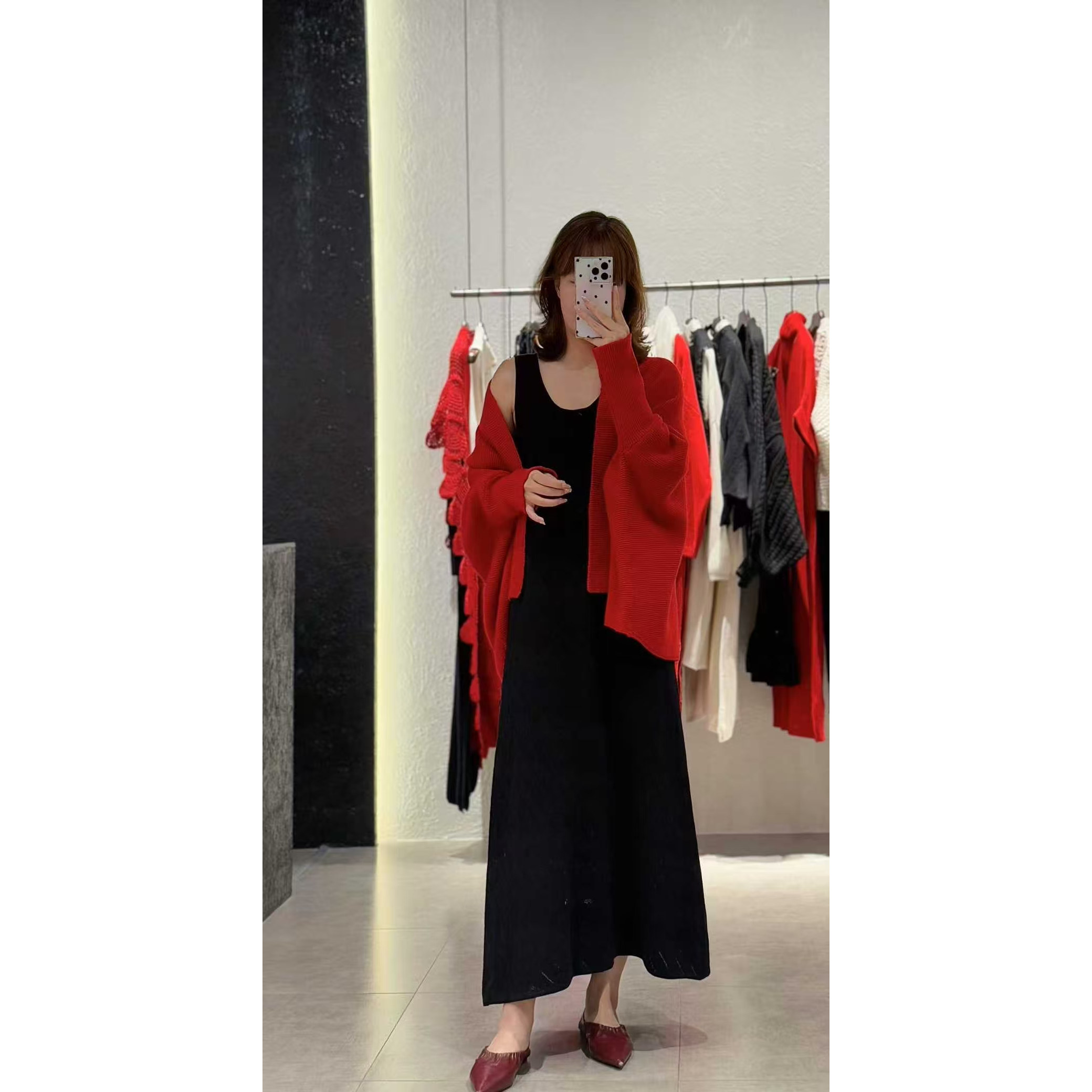 2025新款 欧货时尚 女秋冬装 开衫 毛边斗篷披肩外套 气质大翻领针织衫
