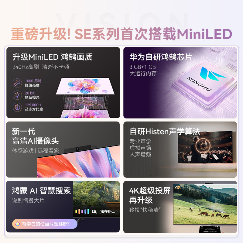 MateTV同源华为电视机政府补贴 65寸鸿蒙AI 华为Vision智慧屏5