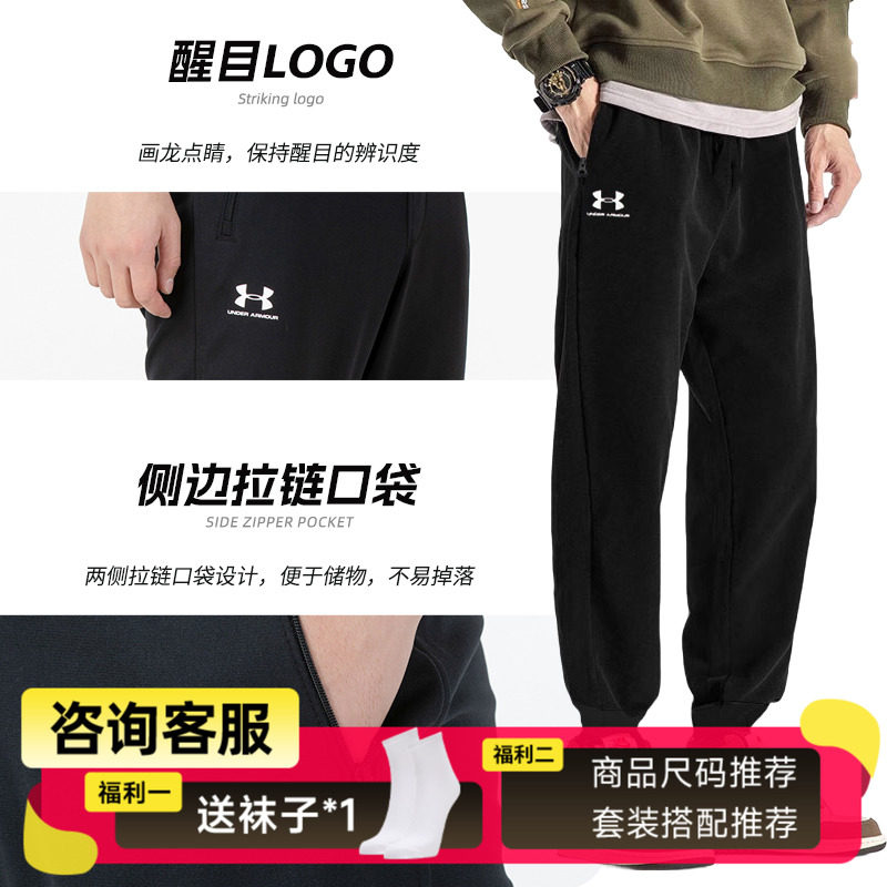 新款 直筒裤 休闲卫裤 安踏运动裤 针织加绒裤 冬季 黑色跑步长裤 子 男士
