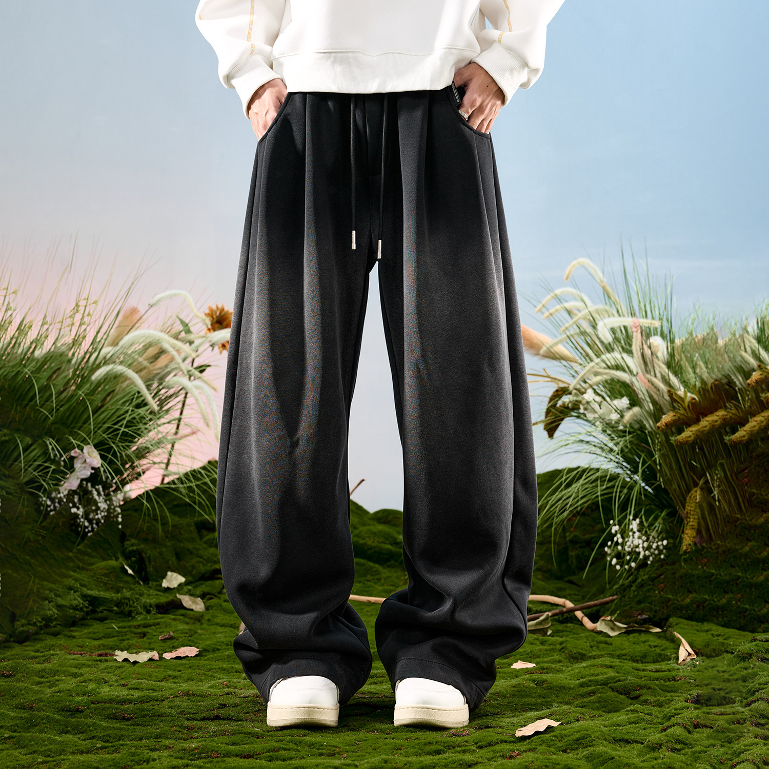 男女2025秋冬新款 宽松垂感长裤 复古水洗做旧阔腿卫裤 Nuthink美式