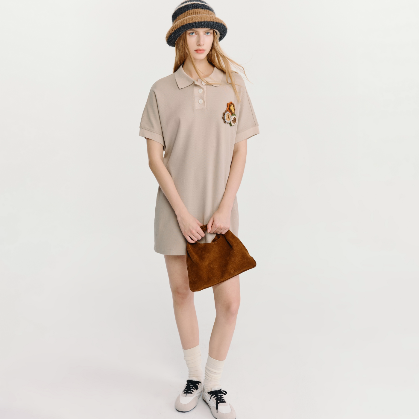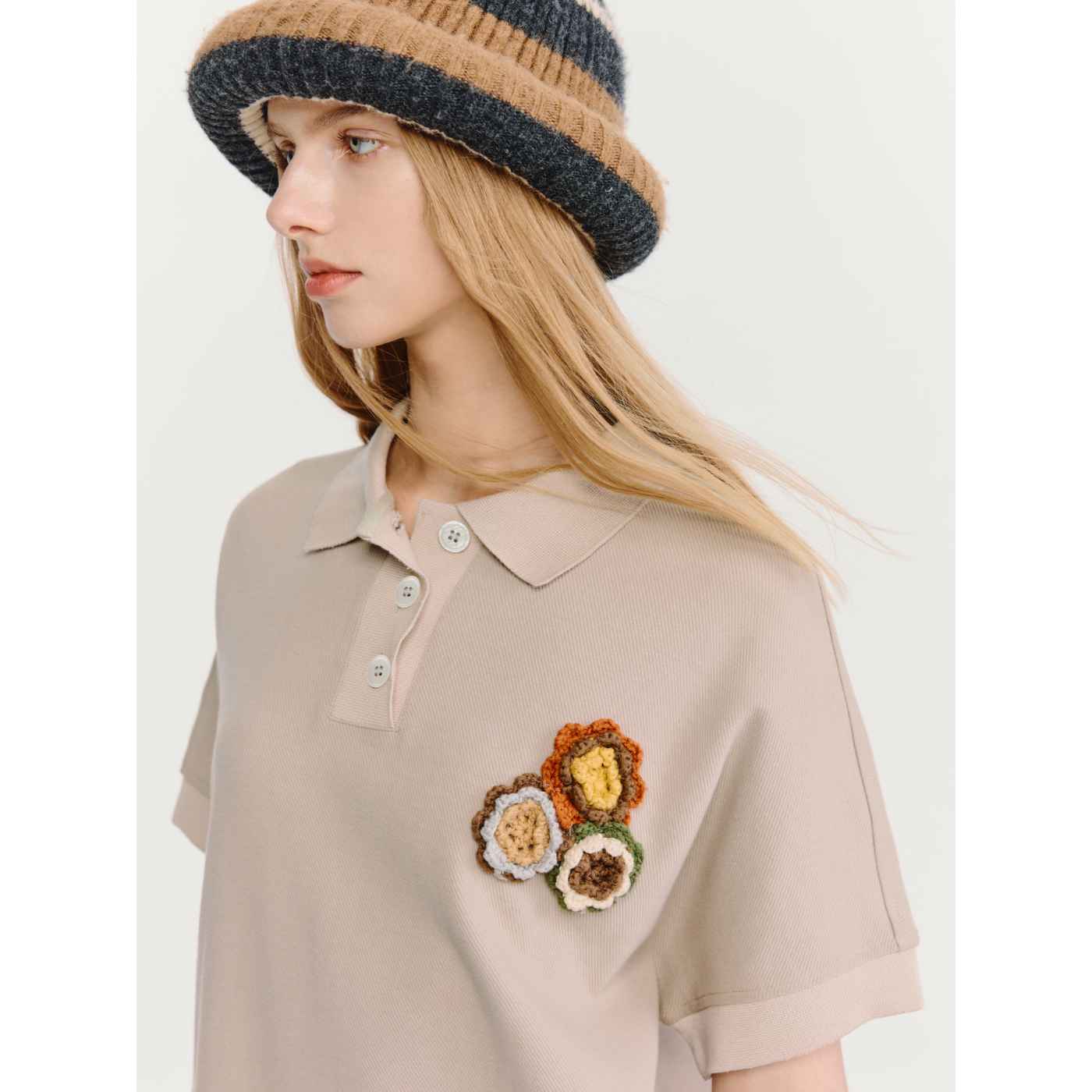 T9381 饰设计女士T恤2026夏季 HAVVA翻领短袖 T恤裙立体钩花刺绣装