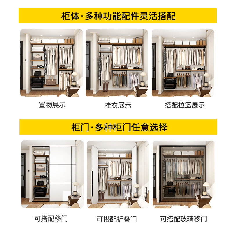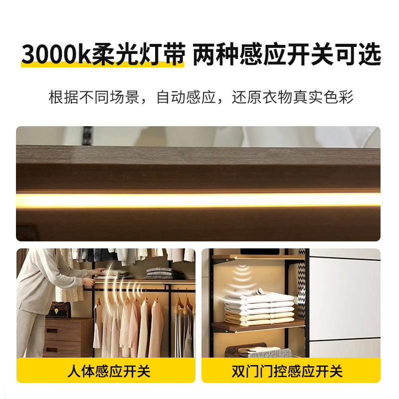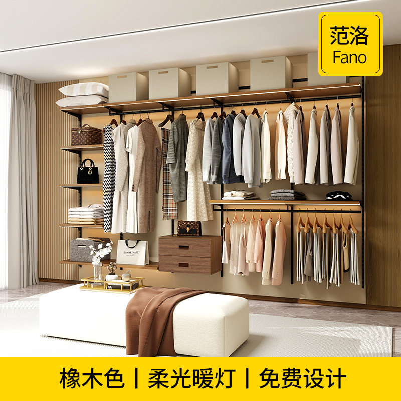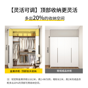 美达斯中古风2.4米柔光暖灯金属框架衣柜橡木色到一门顶复古衣橱