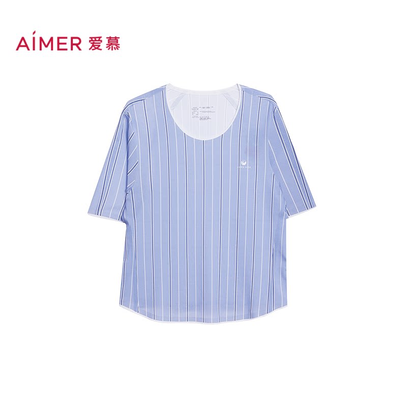 AM46C621 家居套装 爱慕26春夏海藻睡眠衣睡衣女可外穿圆领短袖 短裤