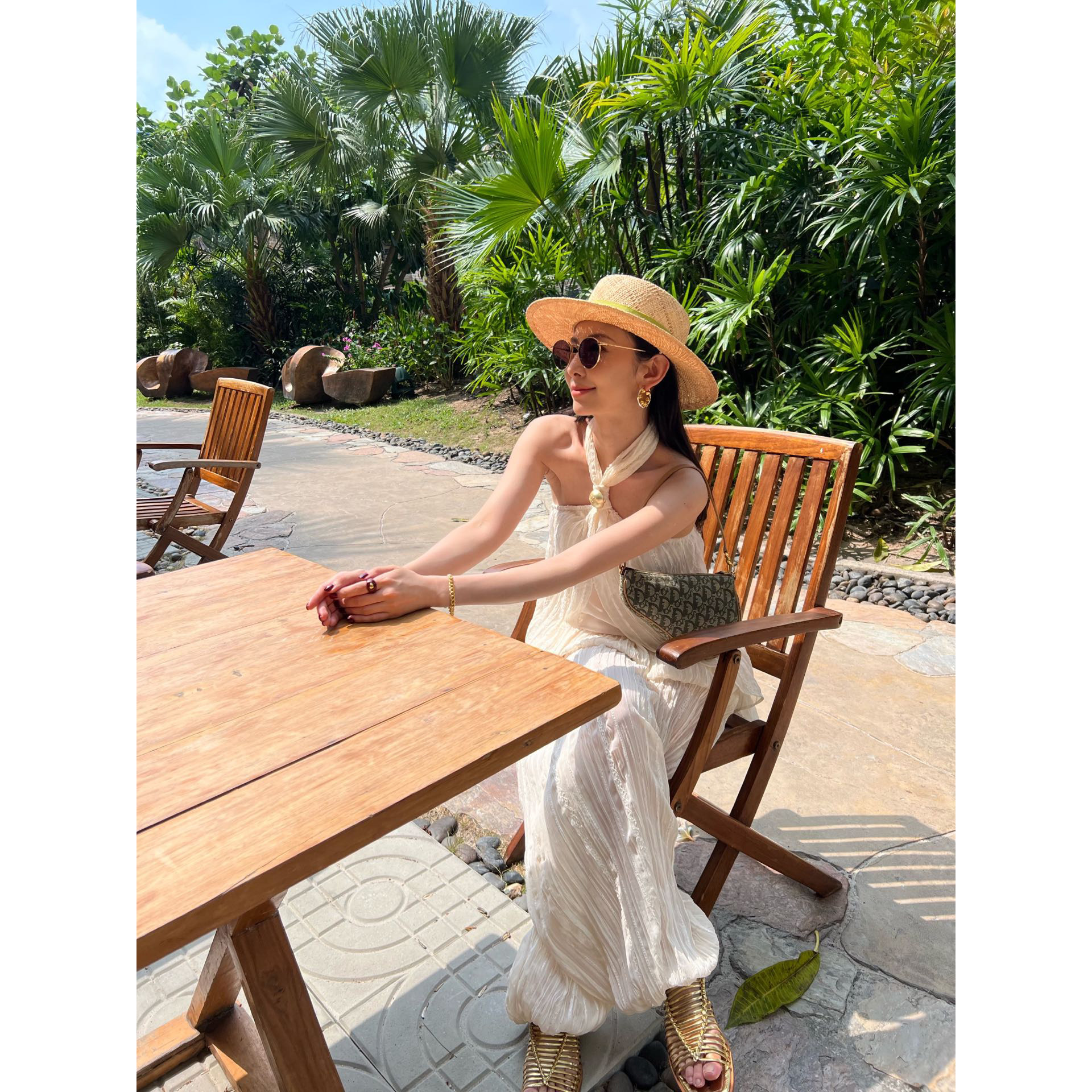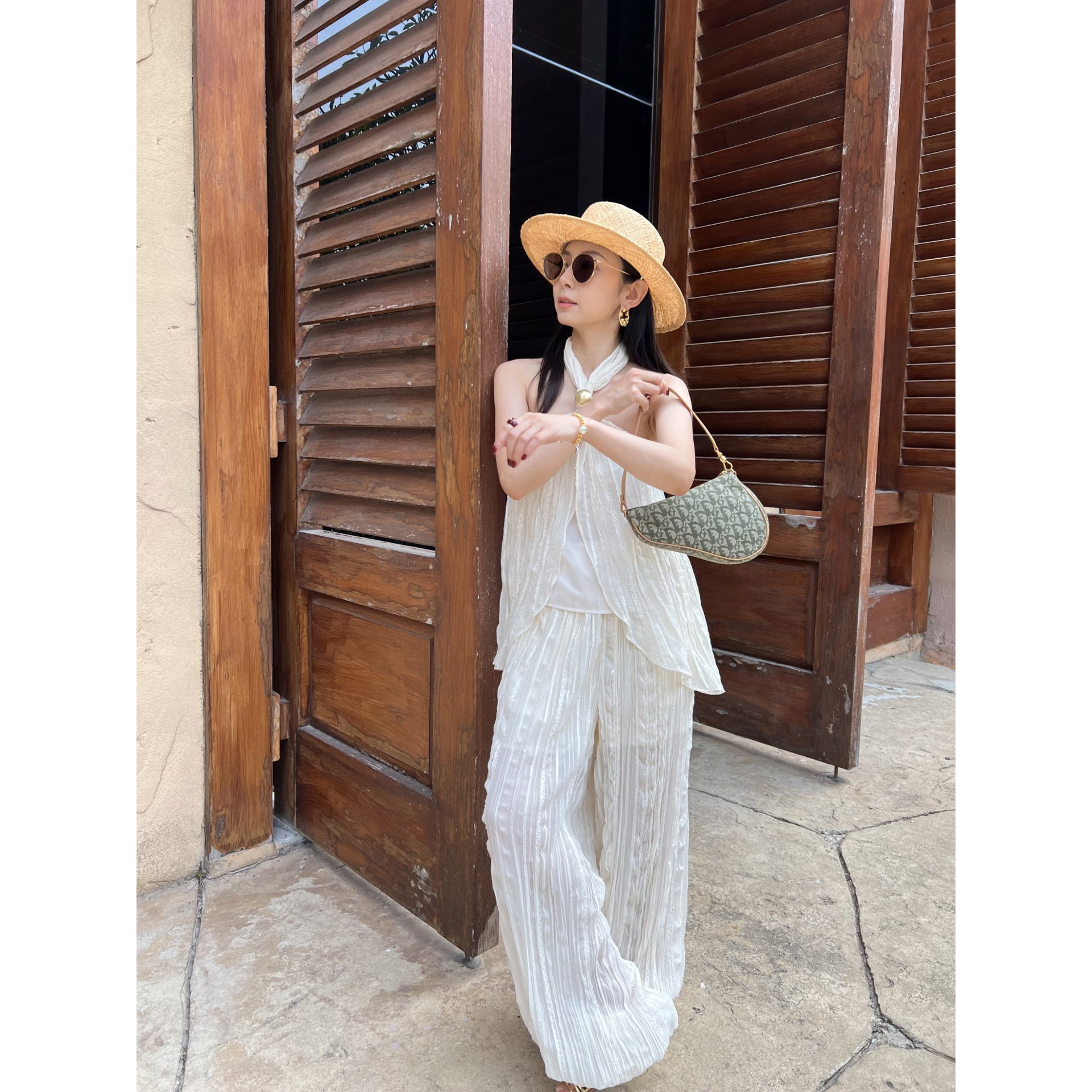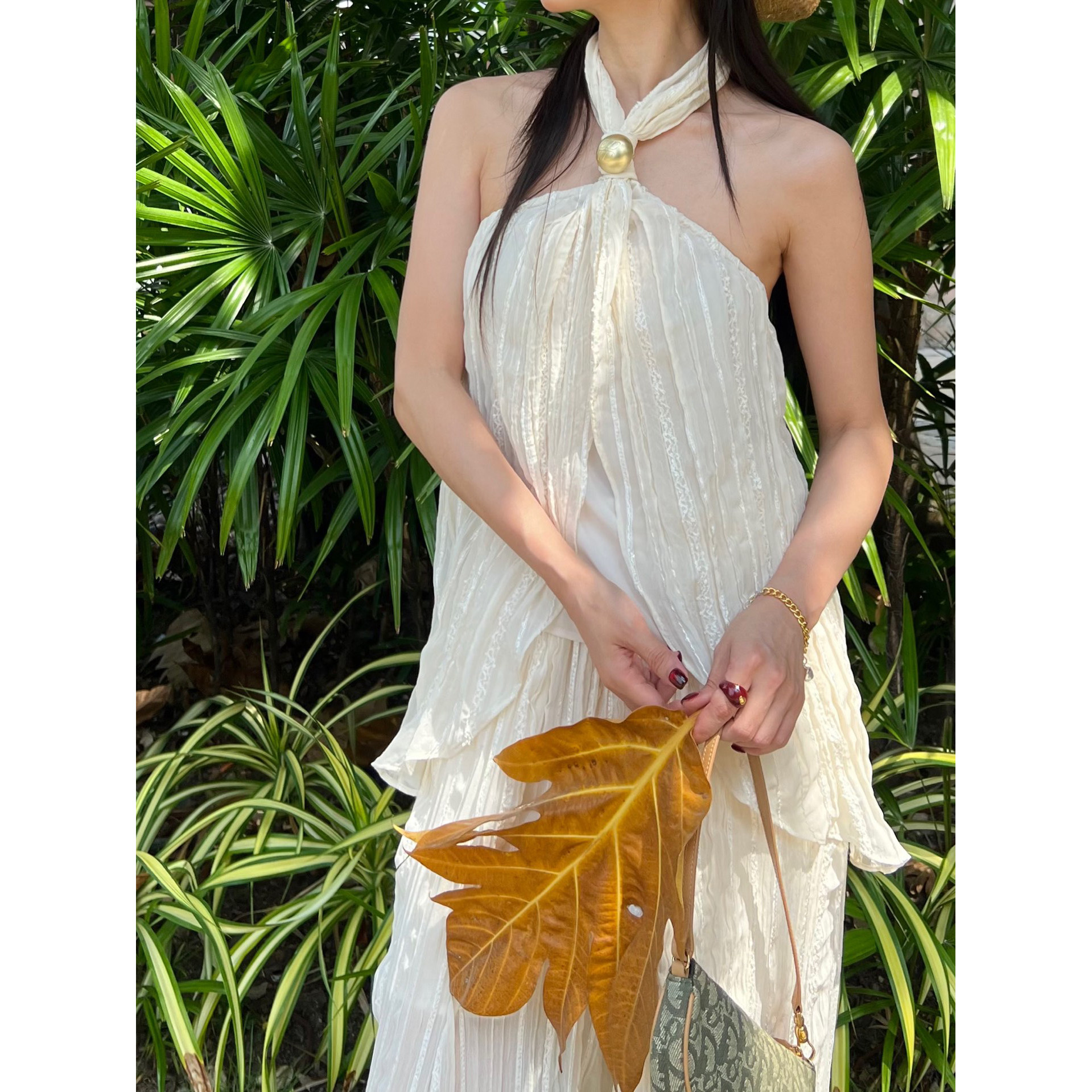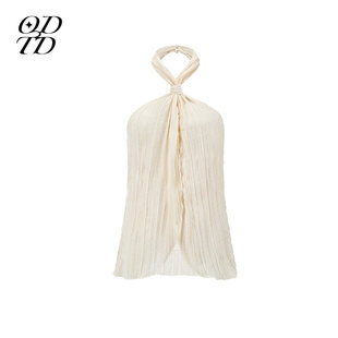 纽结式 ODTD26春夏新款 挂脖褶皱纹理上衣女原野诗意 设计师女装
