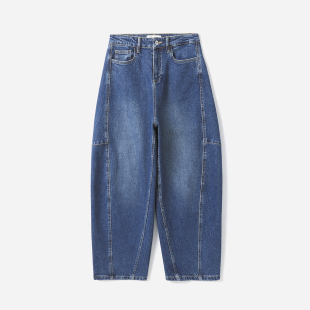 牛仔裤 轻解构分割切线匹马棉弧线茧型香蕉裤 女 茉莉雅集 WKZ09031