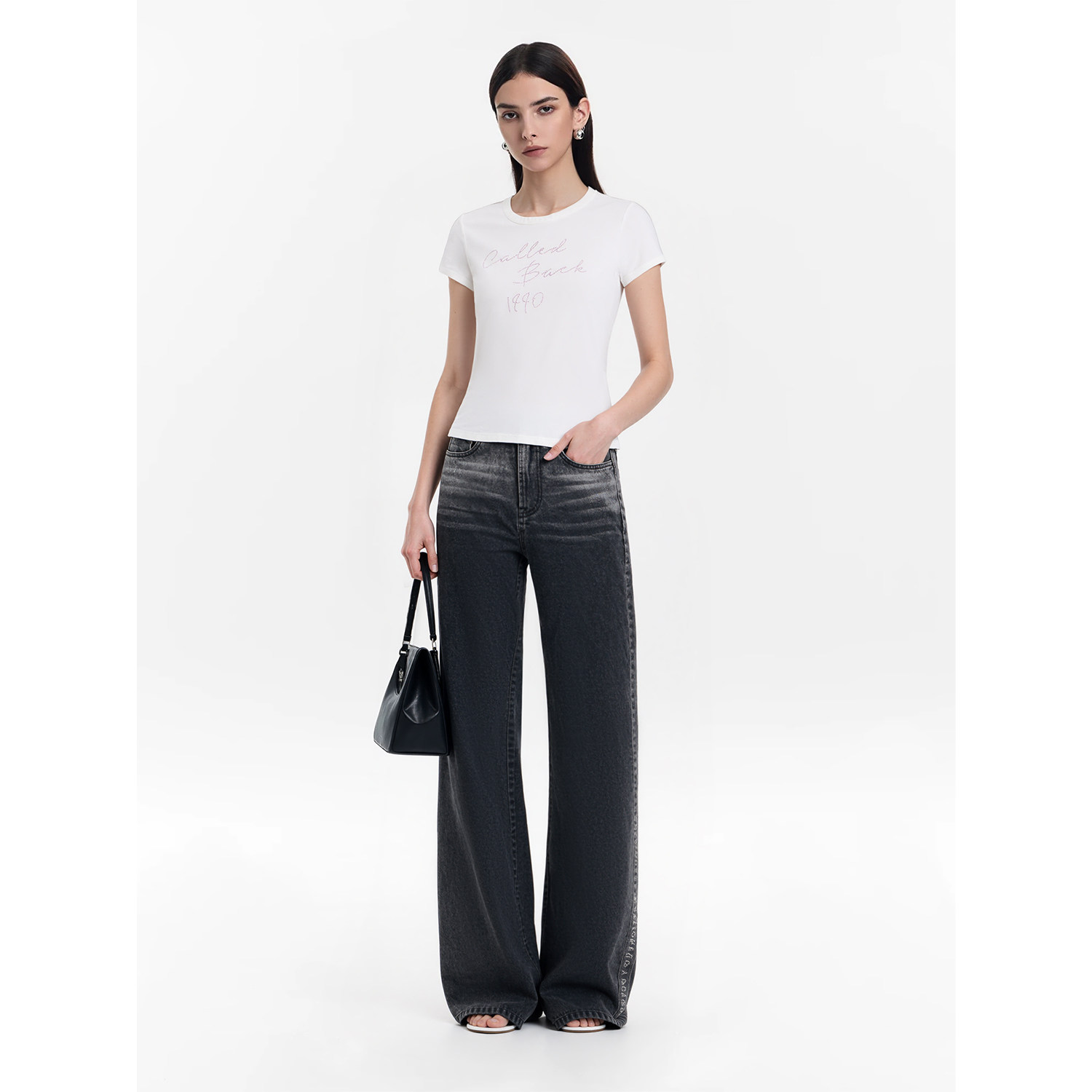 烫钻修身 T恤女2026年春夏新款 百搭设计感上衣 Back黑色短袖 Called