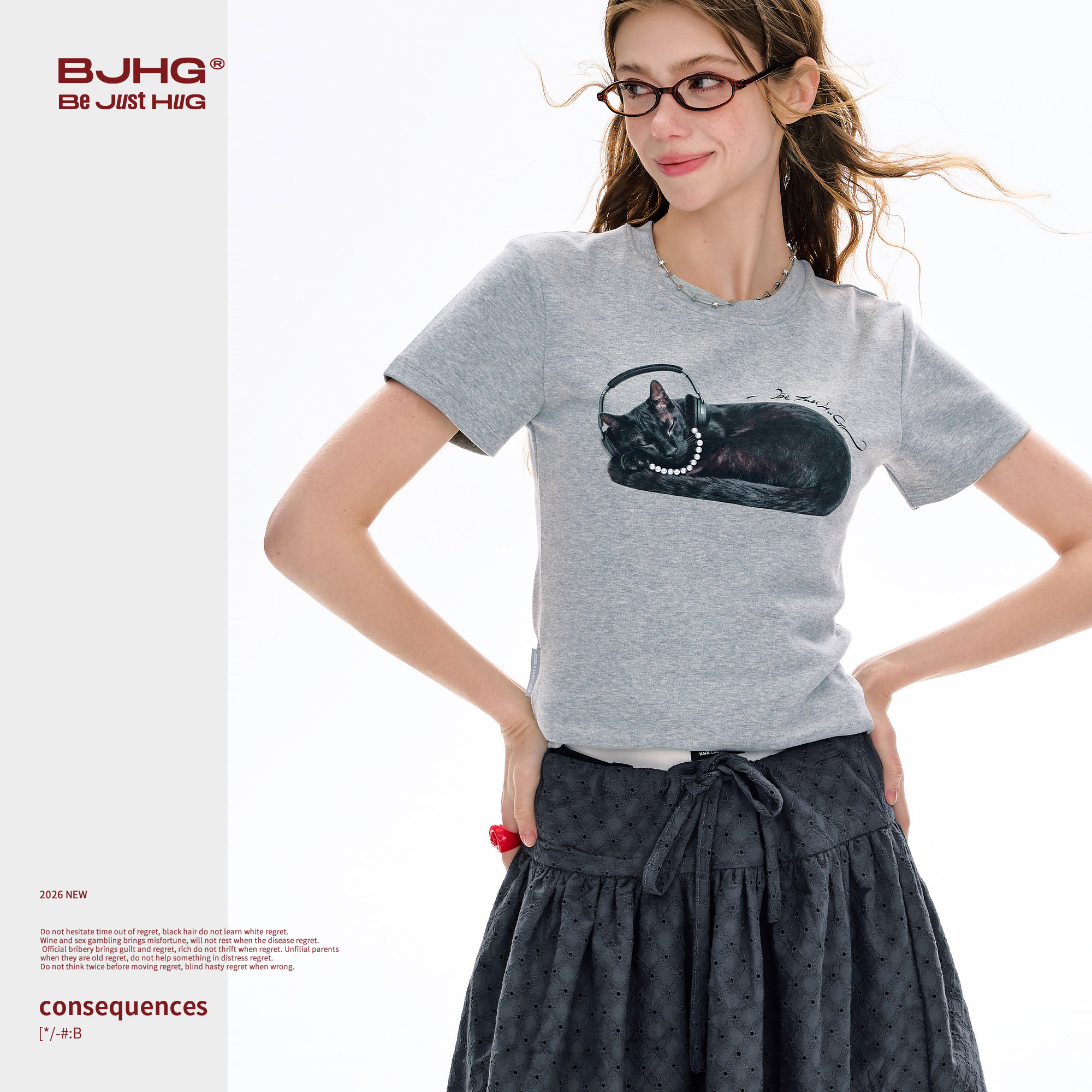 韩系甜妹猫咪印花上衣 夏季 不宠系列BJHG不计后果正肩短袖 T恤女款