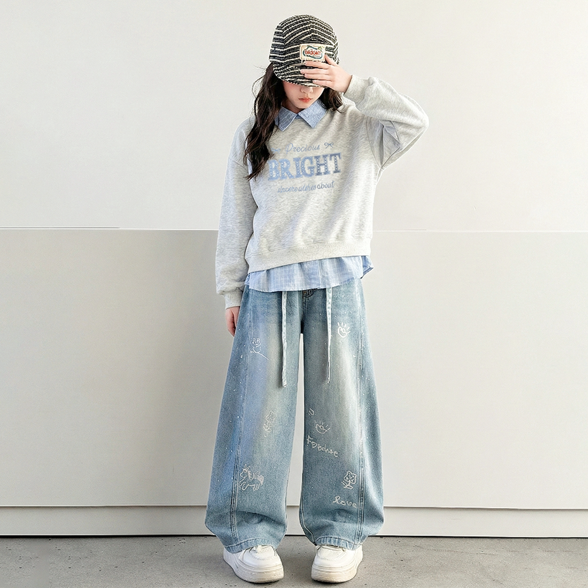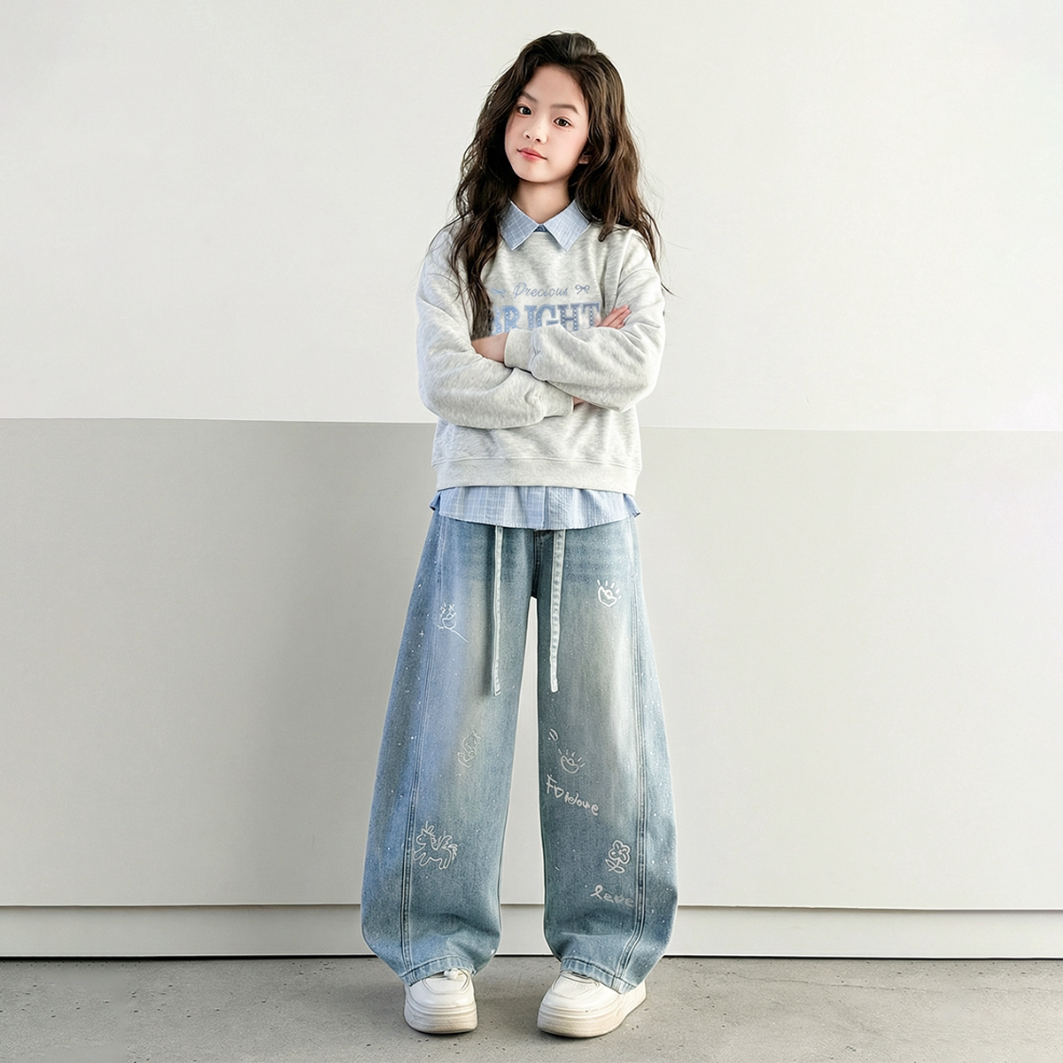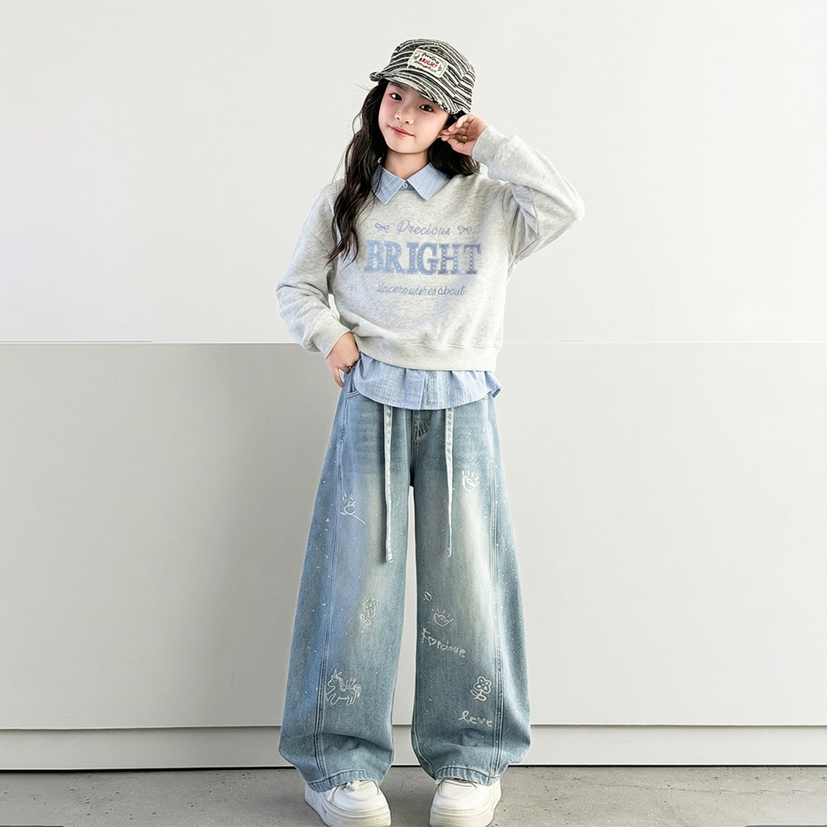 休闲2026新款 潮套装 卫衣牛仔裤 时尚 两件套学生女孩春季 女大童韩版