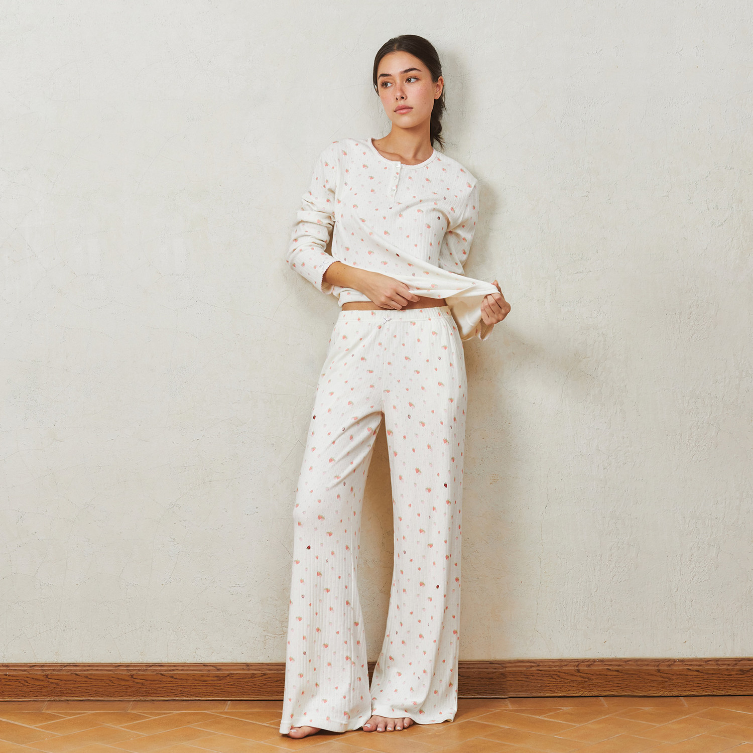 可外穿家居服女 睡裤 SILKY MIRACLE针织睡衣Strawberry桑蚕丝长袖
