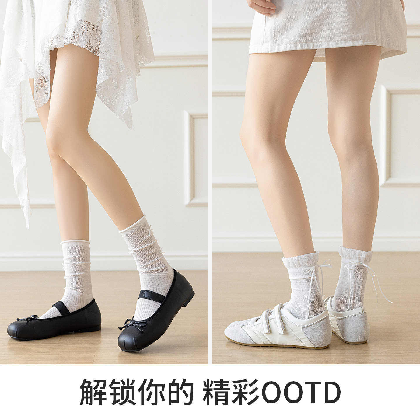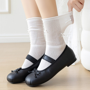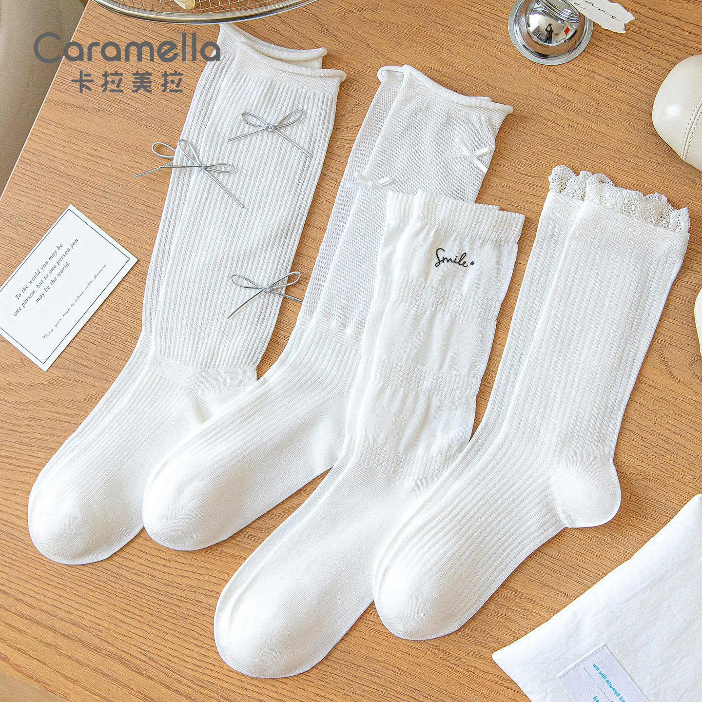 卡拉美拉春夏薄款 网眼透气莫代尔女长筒蝴蝶结白色ins风韩系袜子