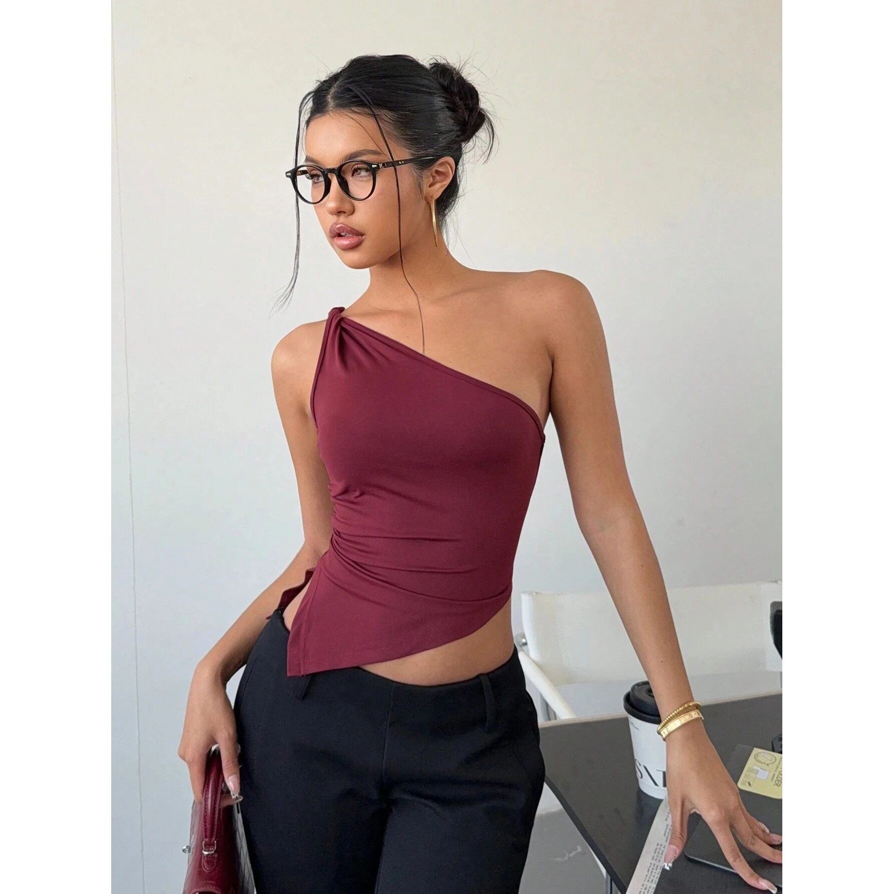 Cami Shoulder Top Off 甜辣风不规则下摆露背小背心女Fashion