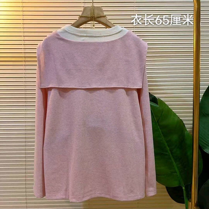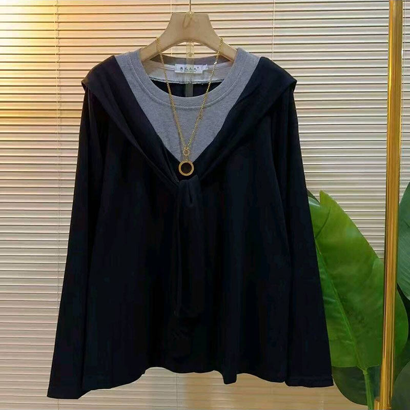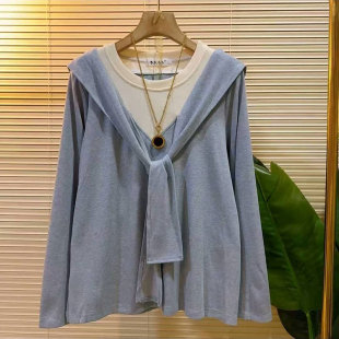 新款 女装 休闲减龄假两件披肩长袖 大码 胖mm百搭上衣女 小衫 2026春季