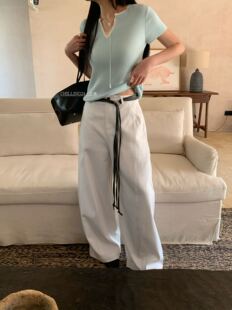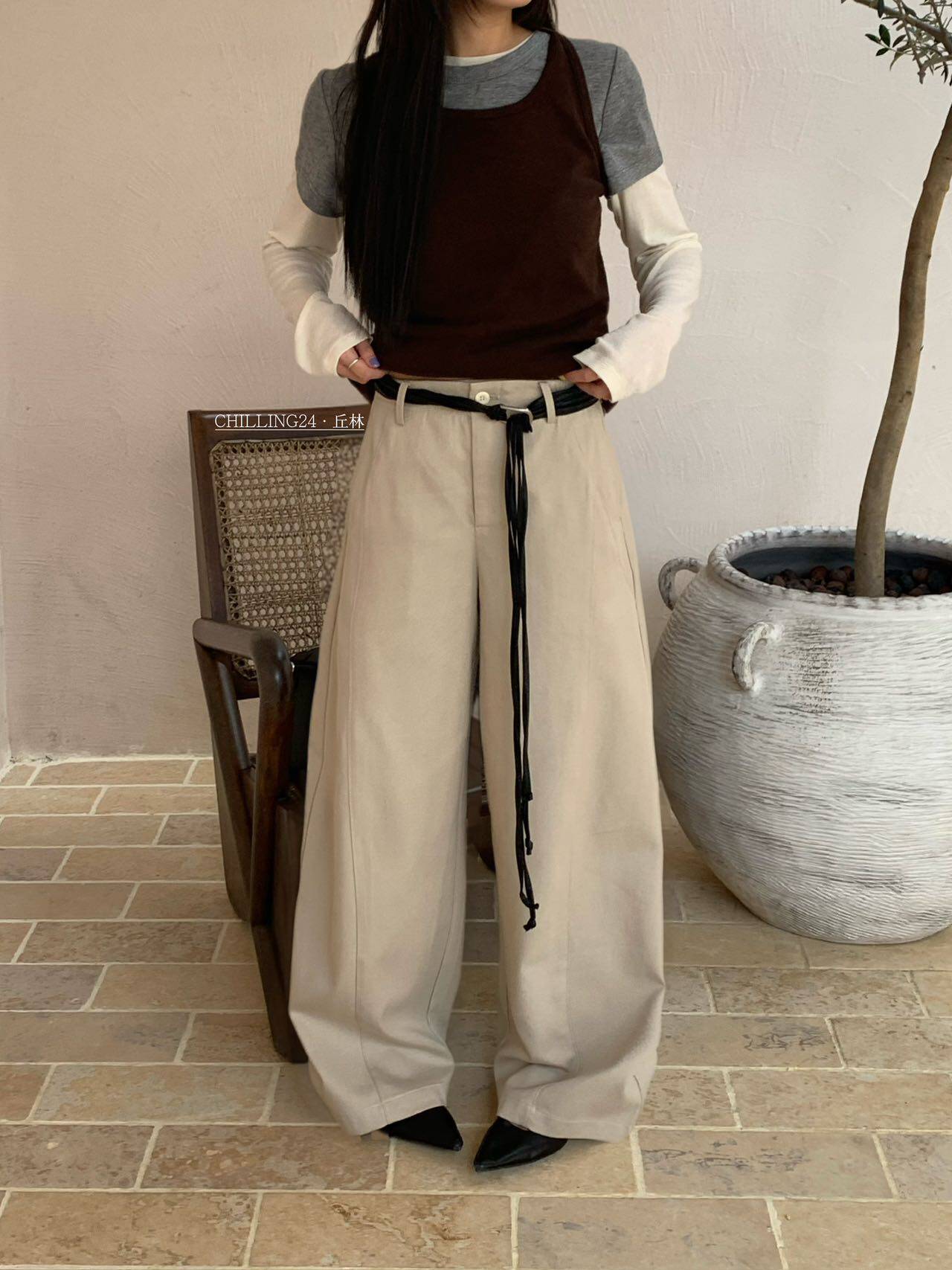 宽松阔腿拖地长裤 韩国chilling41BK559配腰绳休闲裤 女2026春新款