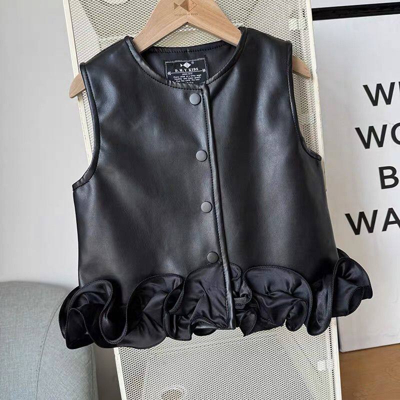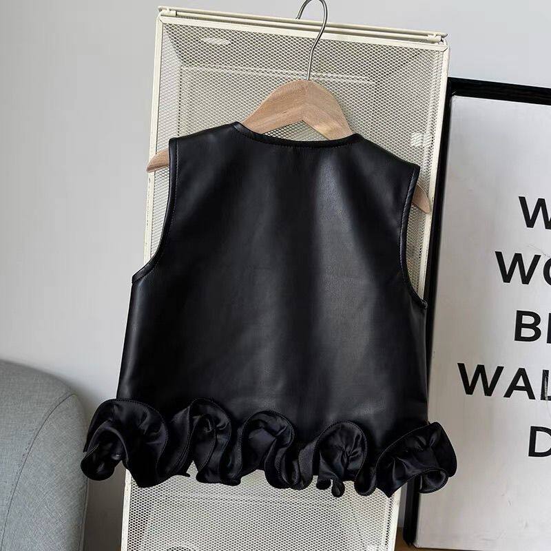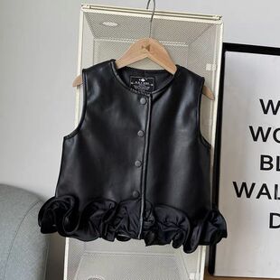 女童皮马甲荷叶边春秋2026新款 外套 洋气外穿儿童皮衣背心时髦秋装