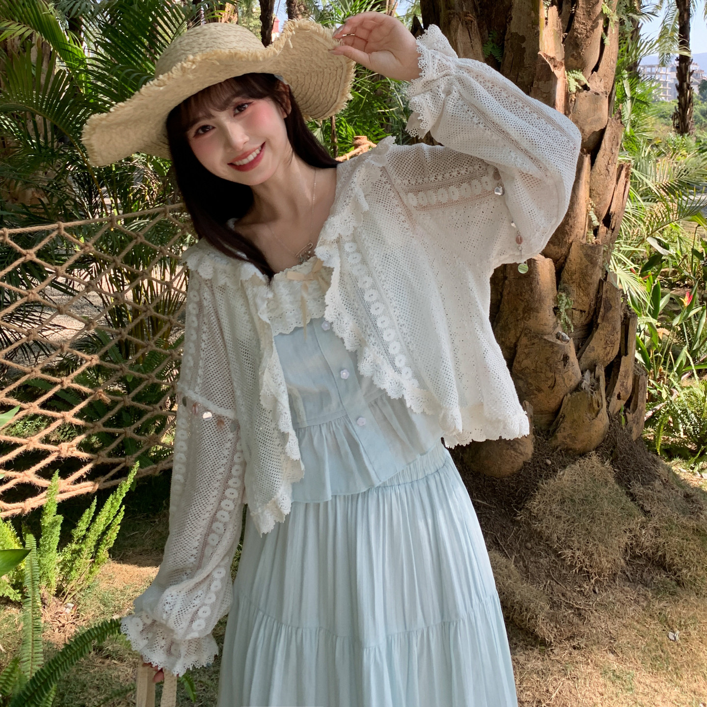 夏季 森女部落薄款 纯色百搭开衫 外套女2026新款 宽松透气设计感短款