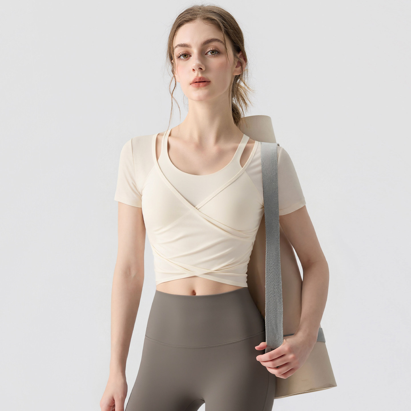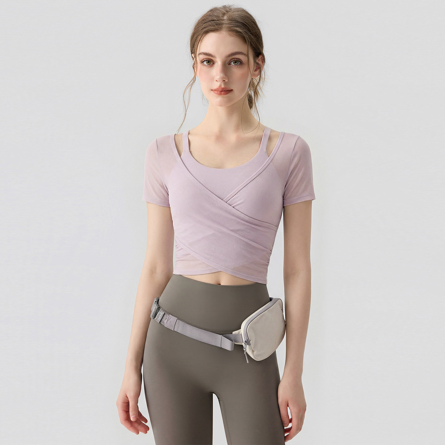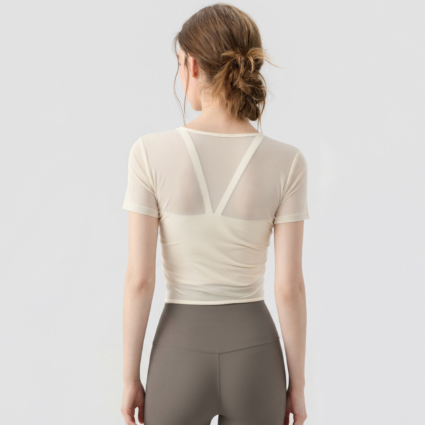 速干跑步运动上衣普拉提训练健身套装 新丽雅瑜伽服女网纱罩衫 短袖