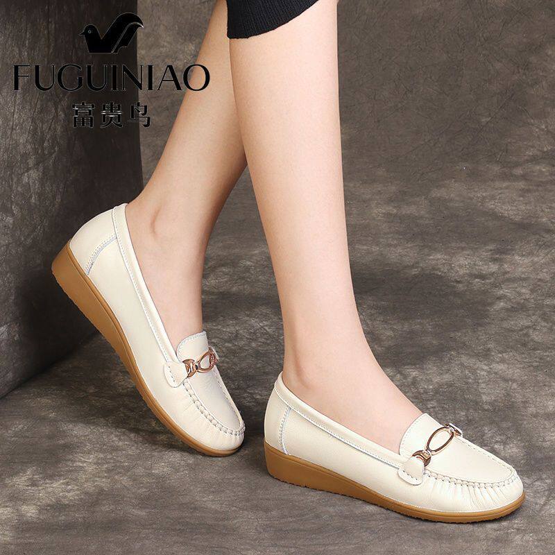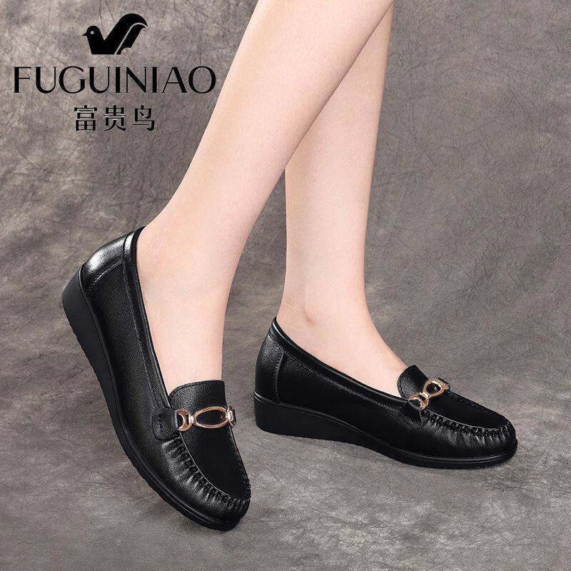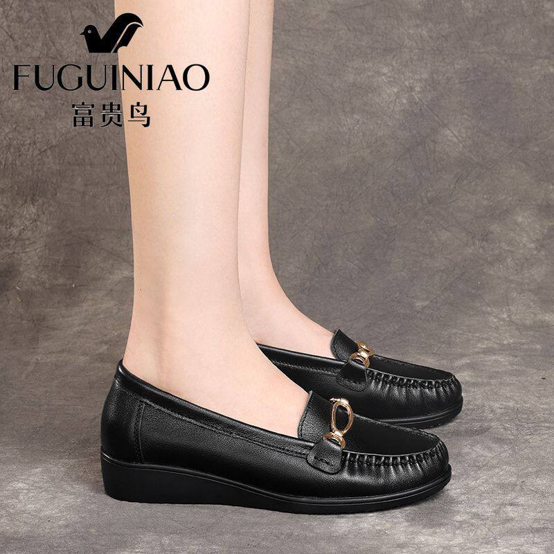 正品 坡跟意脚蹬平底鞋 妈妈豆豆女鞋 富贵鸟软底头层牛皮女士单鞋