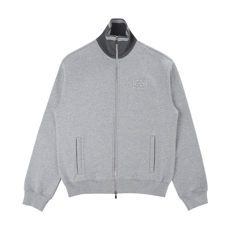 MIU 纯色夹克外套女秋冬 MIU缪缪女士拉链棉质长袖