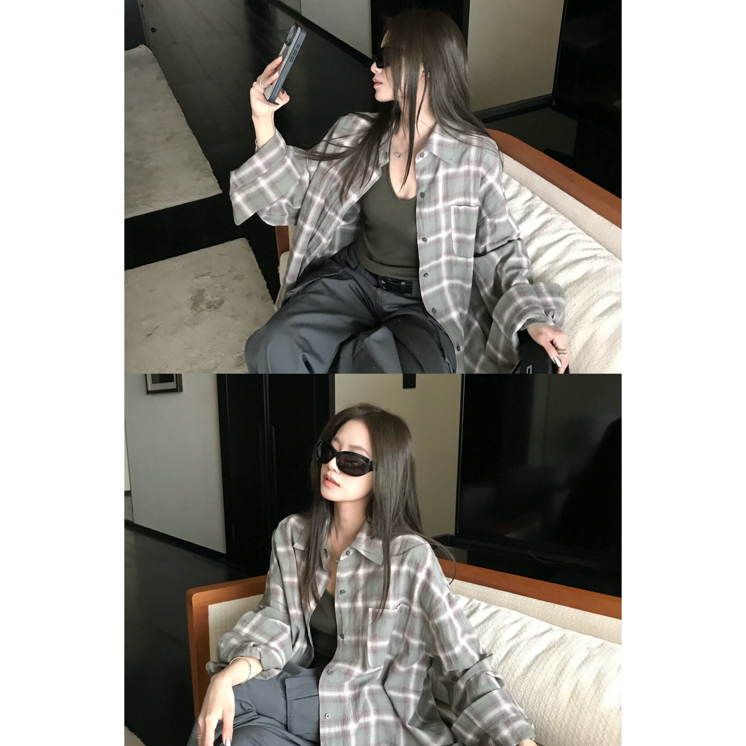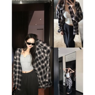 ootd宽松松弛感百搭格子衬衫 素颜黑框 life 外套女 留学生Daily